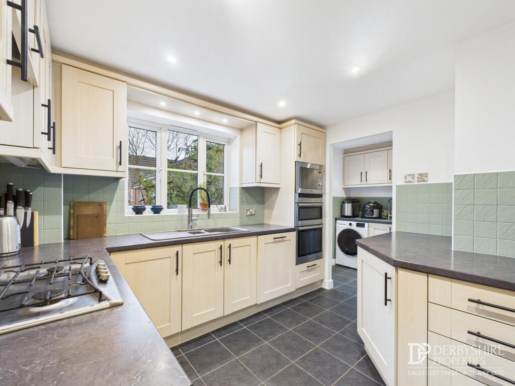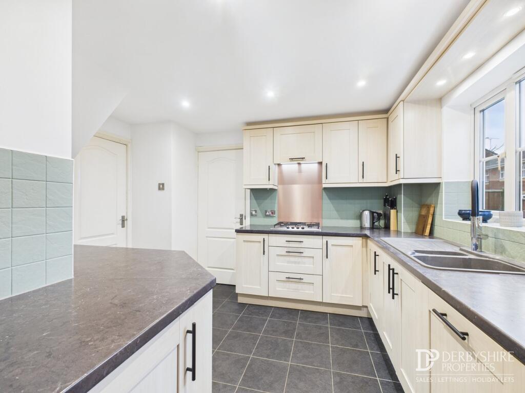 This is a detached property in Belper, offering four bedrooms and three bathrooms. The house benefits from a modern kitchen and bathrooms, a garden, a garage, and off-street parking. While the price is a little high compared to the local average, the property’s features and condition make it an attractive option for families.