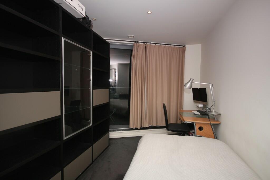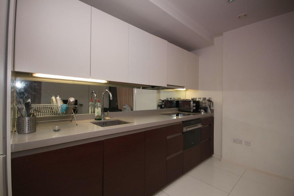 Located in one of Canary Wharf's most sought-after developments, this stunning 8th-floor apartment spans 721 sq. ft. and boasts modern, spacious living. Highlights include a bright open-plan living room and kitchen, a master bedroom with balcony access, a second bedroom, and a family bathroom