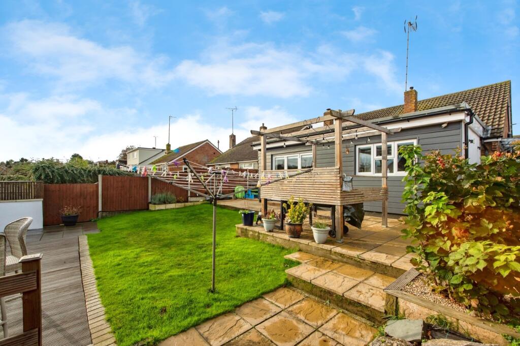 This is a two-bedroom bungalow in Istead Rise, Gravesend. The property is in good condition, with a modern kitchen and bathroom. It has a good-sized garden with a patio and lawn. The property is located close to local amenities, including a primary school and railway station. The listing price seems reasonable when compared to similar properties in the area.