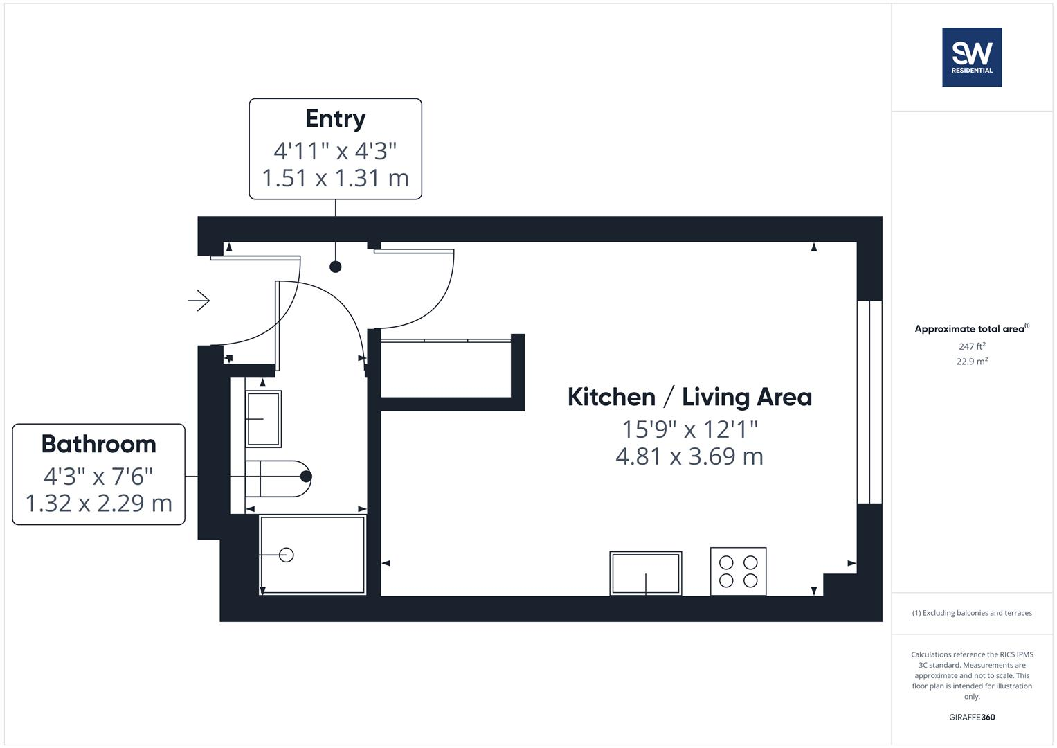 West Point, Wellington Street, Leeds. A compact studio apartment situated on the fourth floor of this landmark development. Open plan living area with compact kitchen with integrated fridge, electric hob and convection microwave. Bedroom area with double bed and compact built in wardrobe. Shower ...