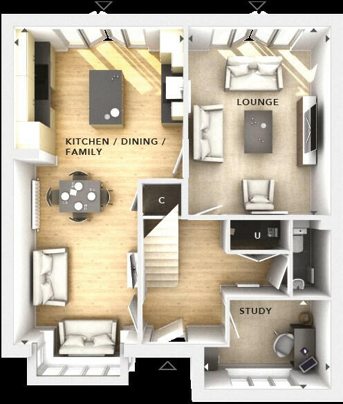 This exceptional four-bedroom detached home combines modern style and spacious living, making it ideal for families. On the ground floor, you'll find a bright and airy lounge, perfect for relaxation, along with a contemporary open-plan kitchen and dining area. Elegant French doors open onto ...
