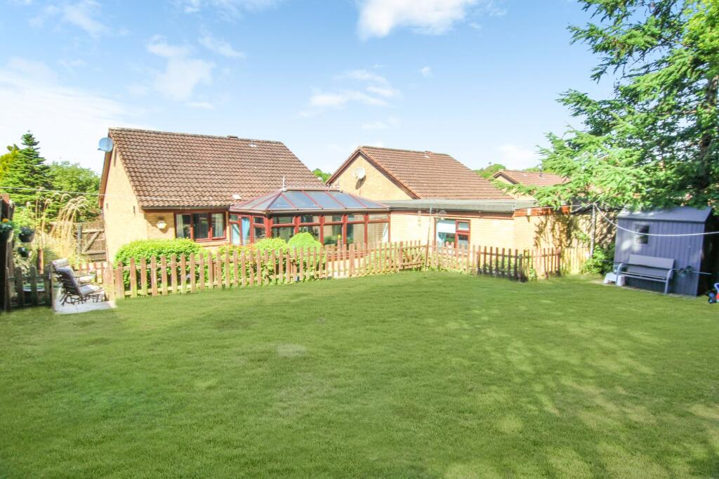 Corner Plot Three-bedroom Detached Bungalow with delightful conservatory. Bedroom Three formed by conversion of Garage and currently used as a home office. Beautiful secluded and tranquil rear garden for peaceful living. Monobloc Driveway.