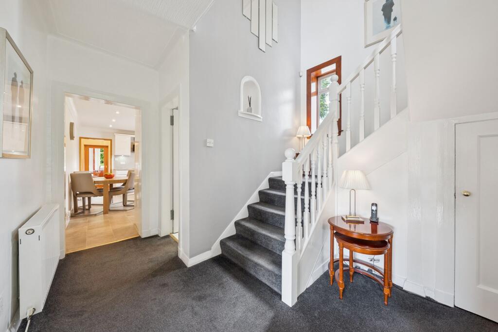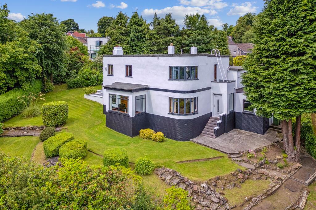 One of Bearsden’s most iconic and highly sought-after "C" listed Art Deco villas, this remarkable home is nestled within a peaceful cul-de-sac of just eight similar residences, built circa 1933 by John McDonald.