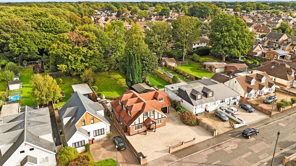 This is a detached property located on Bredhurst Road in Wigmore, Medway. The house features four bedrooms and two bathrooms, with a total living space of 1,300 sqft. The property includes a well-maintained garden with a cabin/workshop and a paved patio area. The interior appears to be in good condition, with modern fixtures and fittings. While the location offers proximity to local schools and transportation links, the list price of £800,000 seems high compared to the average price in the area and recent sales of similar properties. The property is listed with Jacksons Estate Agents.