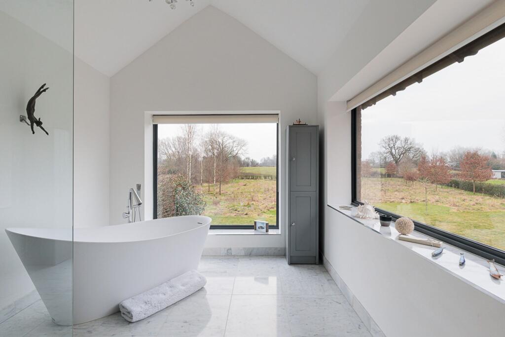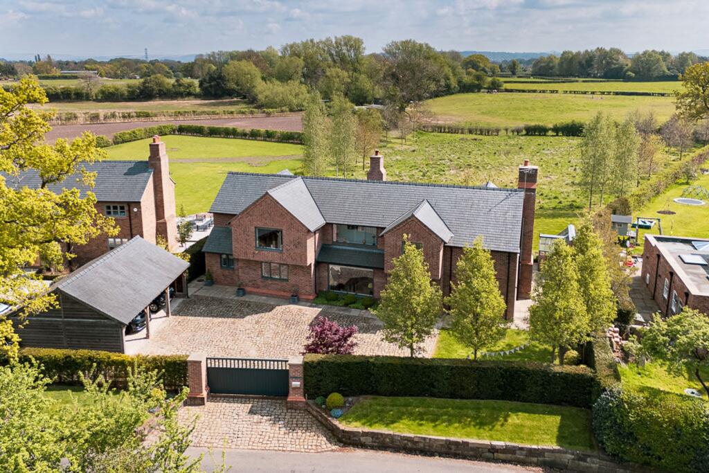 Exceptional 3-bed detached home on Mobberley Lane with modern architecture and premium finishes. Expansive open-plan living space, bespoke kitchen, underfloor heating, luxurious principal suite, tranquil garden, triple carport. Luxury living in sought-after location.