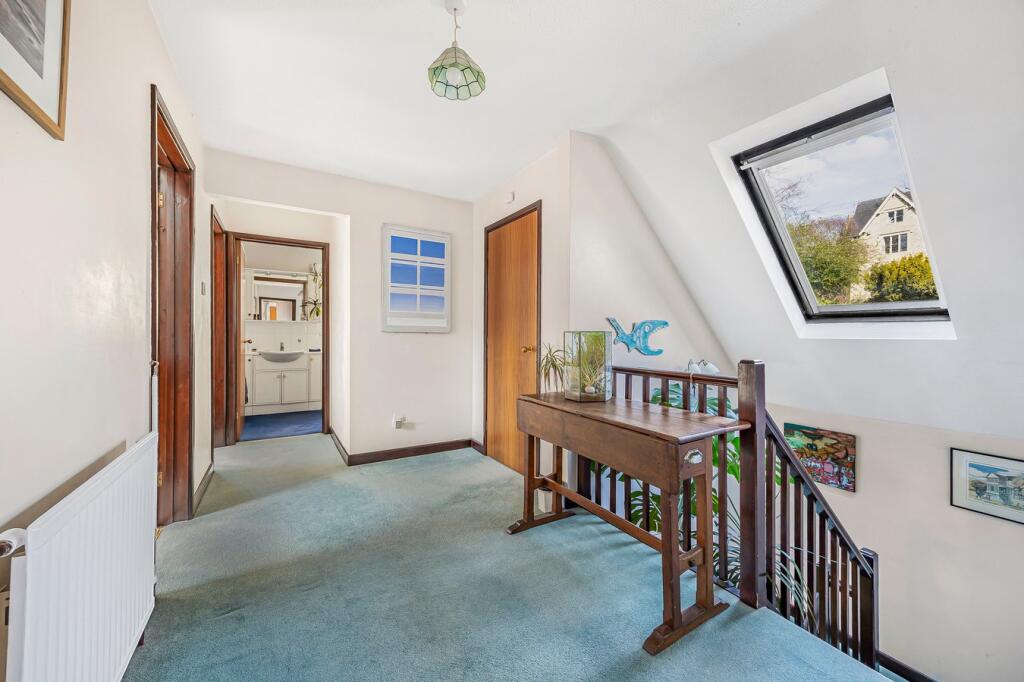 A substantial individual detached house in a sunny spot within one of Stroud's best roads just half a mile from the shops and amenities of our wonderful town with a double garage, a south facing garden with a super view across the Golden Valley and spacious, light filled accommodation of c.180...