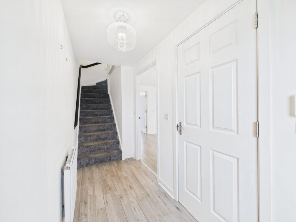 52 Sinclair Place is an end-of-terrace property located in Law, South Lanarkshire. The house features three bedrooms and three bathrooms. The interior appears to be in good condition, with a modern kitchen and well-maintained bathrooms. The property benefits from a garden, adding to its appeal. While the location is not in a major urban center, it offers a quieter residential setting with reasonable access to nearby amenities and transportation links in Carluke. The price is slightly above the average for the street but appears justified by the property’s condition and features.
