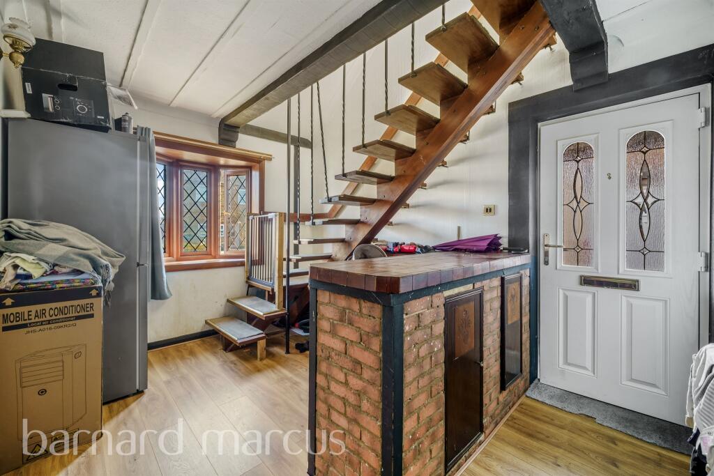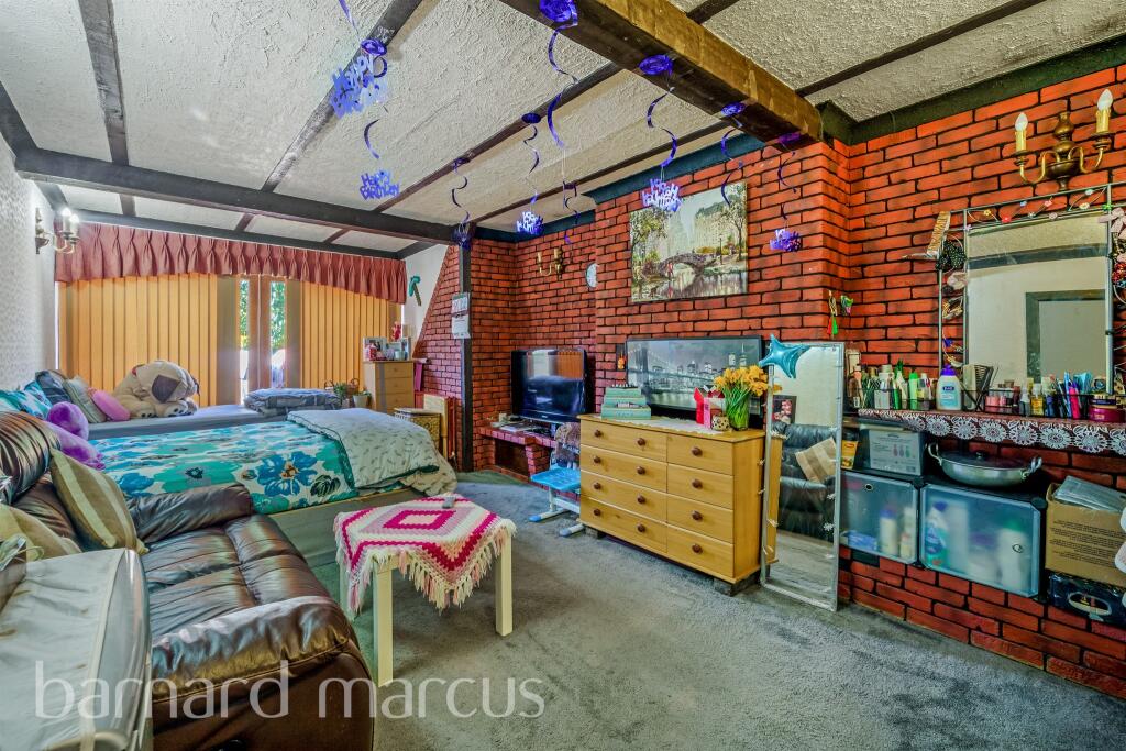 This three-bedroom semi-detached chalet bungalow on Hatton Road in Feltham offers spacious and flexible living. The loft extension has bedrooms and a WC. Downstairs, there are two reception rooms, a family bathroom, and a rear kitchen leading to a conservatory.