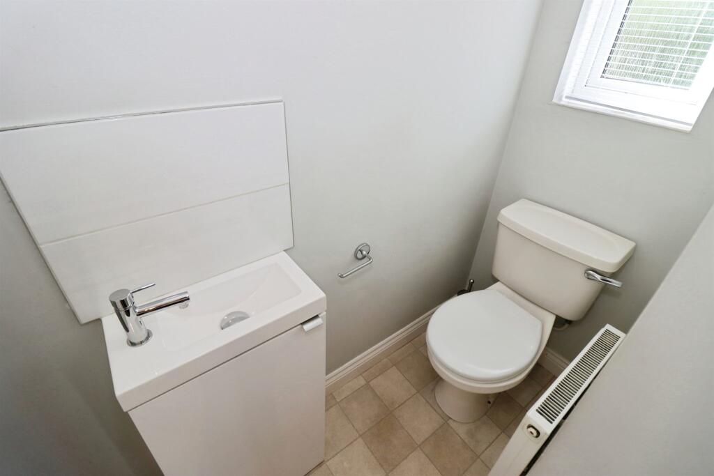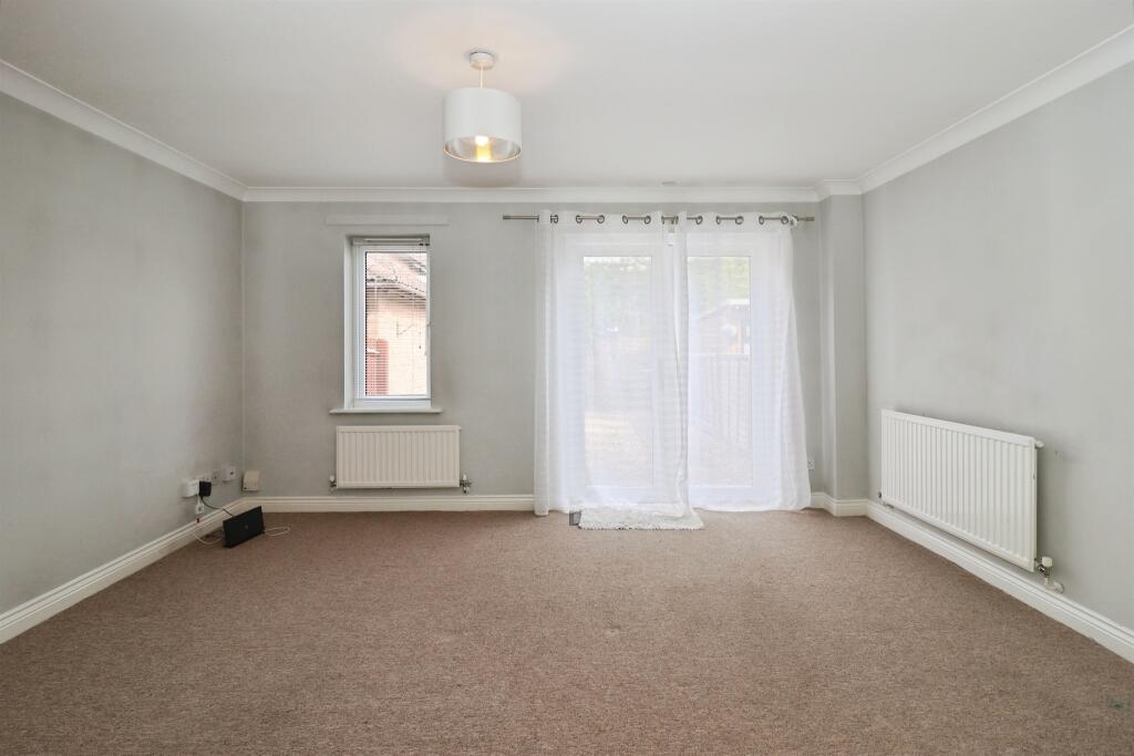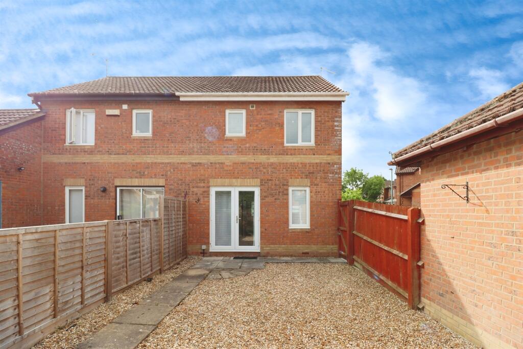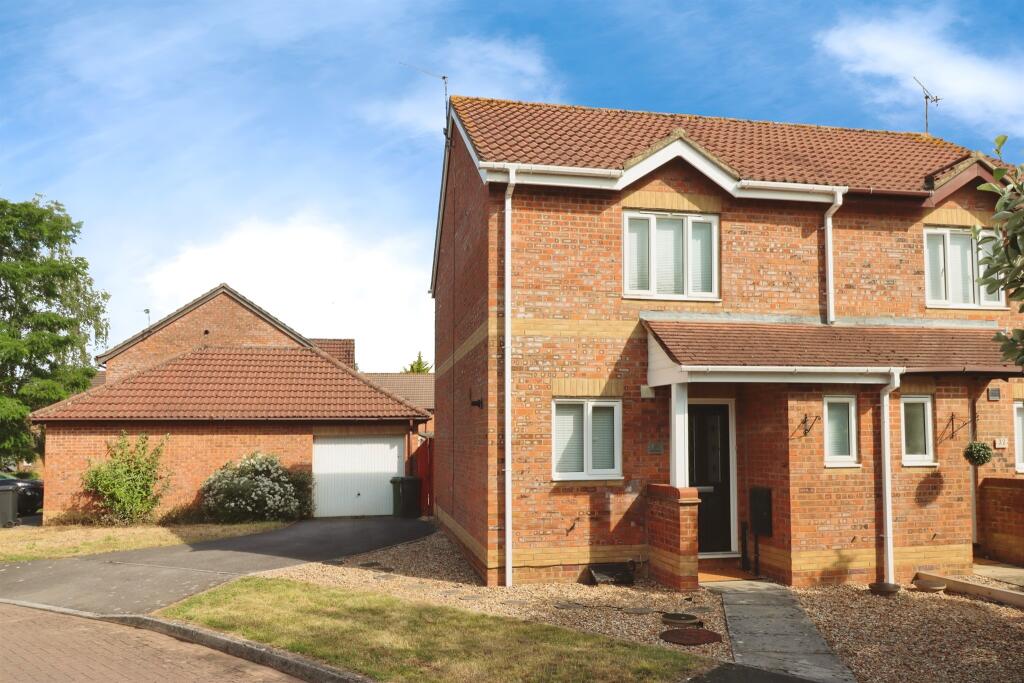 Two-bedroom semi-detached in Emersons Green. Lounge with garden access, kitchen to front, two bedrooms with storage, downstairs WC, walk-in shower room, rear garden, garage with power, and driveway.