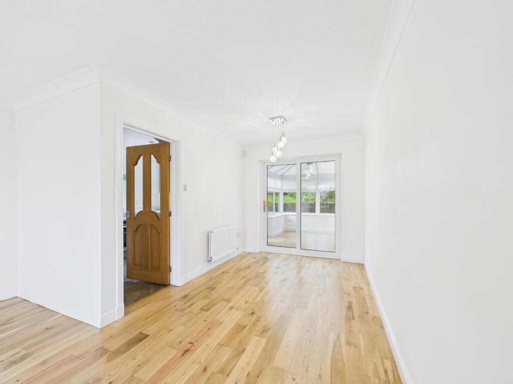 This immaculate detached three-bedroom home, featuring a modern kitchen, spacious reception room, delightful conservatory, and single garage, offers stylish and practical living in a highly sought-after location close to amenities, transport links, and green spaces.