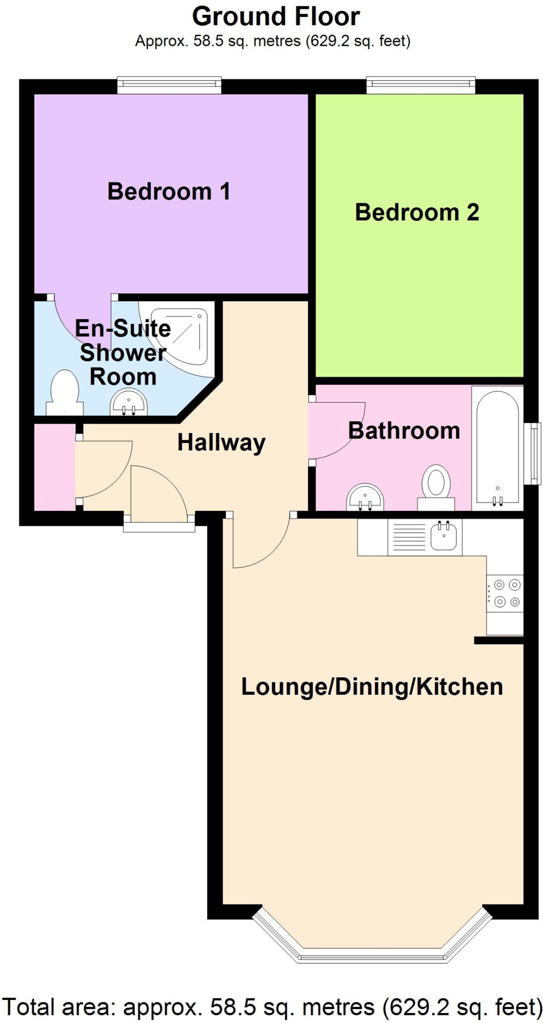 A well presented ground floor modern apartment, with accommodation comprising: Communal hallway, open plan lounge/dining/kitchen. There are two bedrooms and a bathroom, with bedroom one having an en-suite shower room. The property benefits from double glazed windows and electric heaters. Outside ...