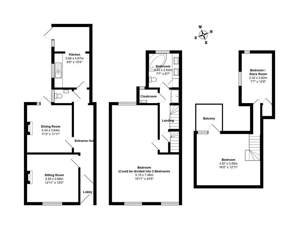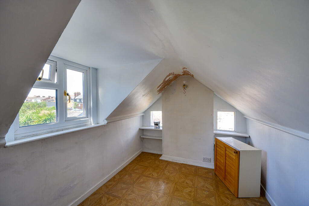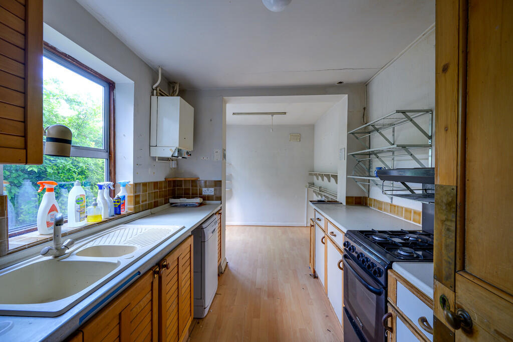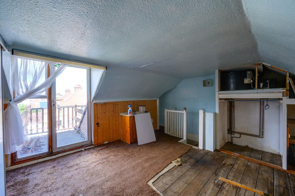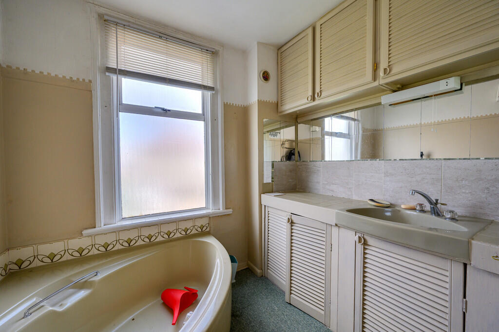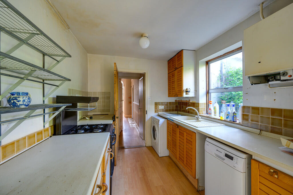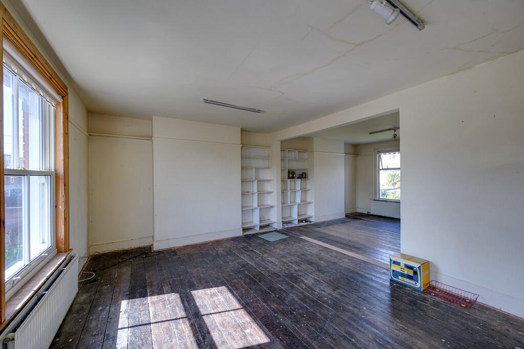 A spacious three-storey period home in need of renovation throughout with off-road parking close to town centre.