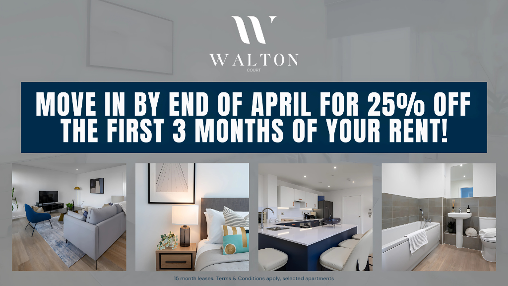 Limited-Time Offer: 25% off first 3 months rent! Brand New Apartments in Walton-on-Thames | Ready to move in now! | Facilities include brand new gym, residents lounge, co-working spaces and yoga studio | Pet friendly & no deposit | 30 mins from Central London