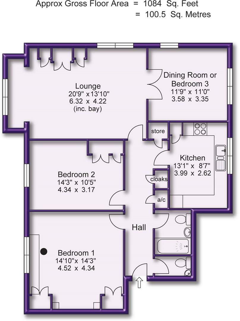 A SUPERBLY SIZED REFURBISHED SECOND FLOOR APARTMENT WITH LIFT, IDEAL FOR THE TOWN CENTRE. 1084sqft. Hall. Lounge. Dining Room/Bedroom 3. Breakfast Kitchen. Two Double Bedrooms. Bathroom. WC. Parking. Garage. Lovely Communal Gardens .No Chain.