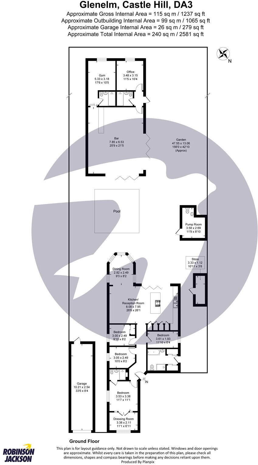 Having been renovated since 2017 Robinson Jackson are delighted to offer for sale this much improved four bedroom bungalow offering 2600 square feet of accommodation. The property consists of the bungalow with four bedrooms as well as a large outbuilding with an office, gym and two shower rooms a...