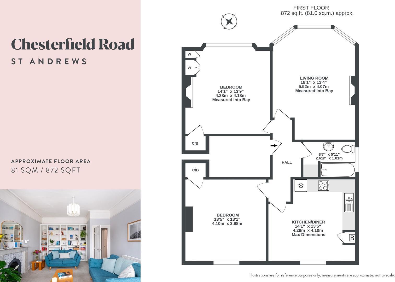 The property is a 2 bedroom flat located on Chesterfield Road in St Andrews, Bristol. It’s an 882 sqft property on an 872 sqft plot. The list price is £425,000.