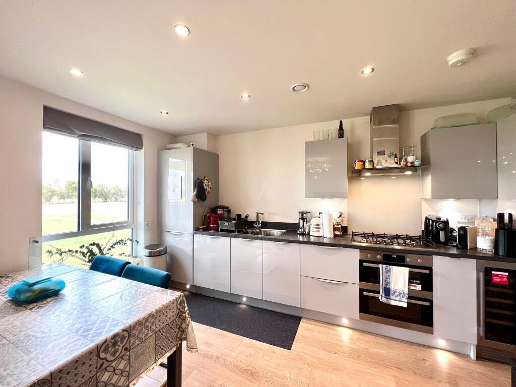 This is a modern two-bedroom apartment in Trumpington, Cambridge. The property is in good condition and benefits from a balcony with pleasant views. The location is desirable, with good schools and transport links nearby. The price seems reasonable for the area. The apartment features two bathrooms, which is a plus for a two-bedroom property. The open-plan kitchen and living area create a spacious feel. Overall, this property would likely appeal to young professionals or small families looking for a modern and well-located home.
