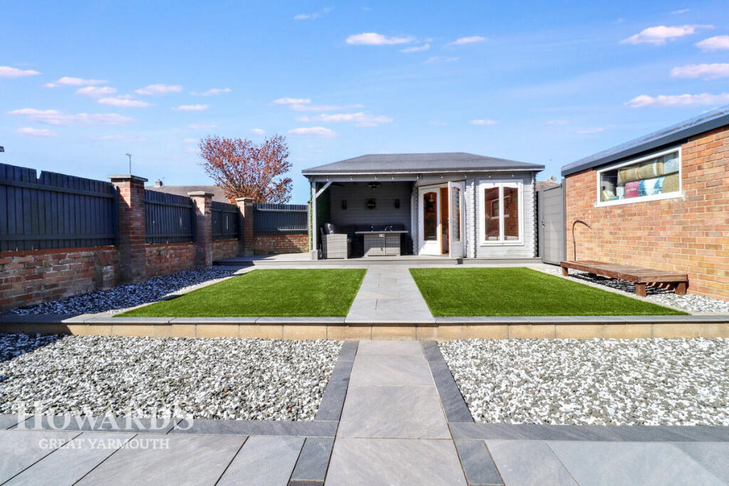This property is a 3 bedroom detached house located on Lawn Avenue in Great Yarmouth, Norfolk. The property benefits from a modern kitchen and bathroom, and appears to be well maintained and presented. There is also a good sized garden with a large garden building. The location is convenient to local amenities and schools. The asking price is above the average for the area, but given the condition, size and additional features, it may represent good value for money.