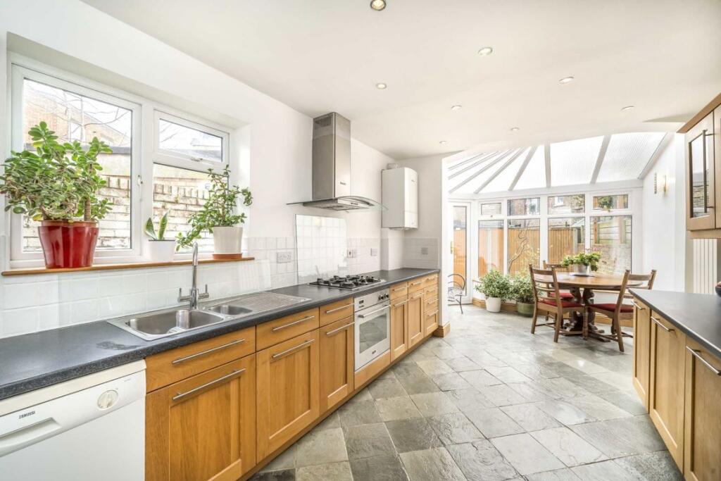 An end of terrace family home with high ceilings and period features on the boarders of Chiswick. The ground floor has a good size double reception room along with an eat in kitchen and conservatory which leads out onto a South facing garden. Further more there are four good size bedrooms and a f...