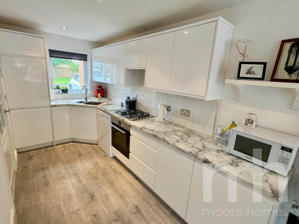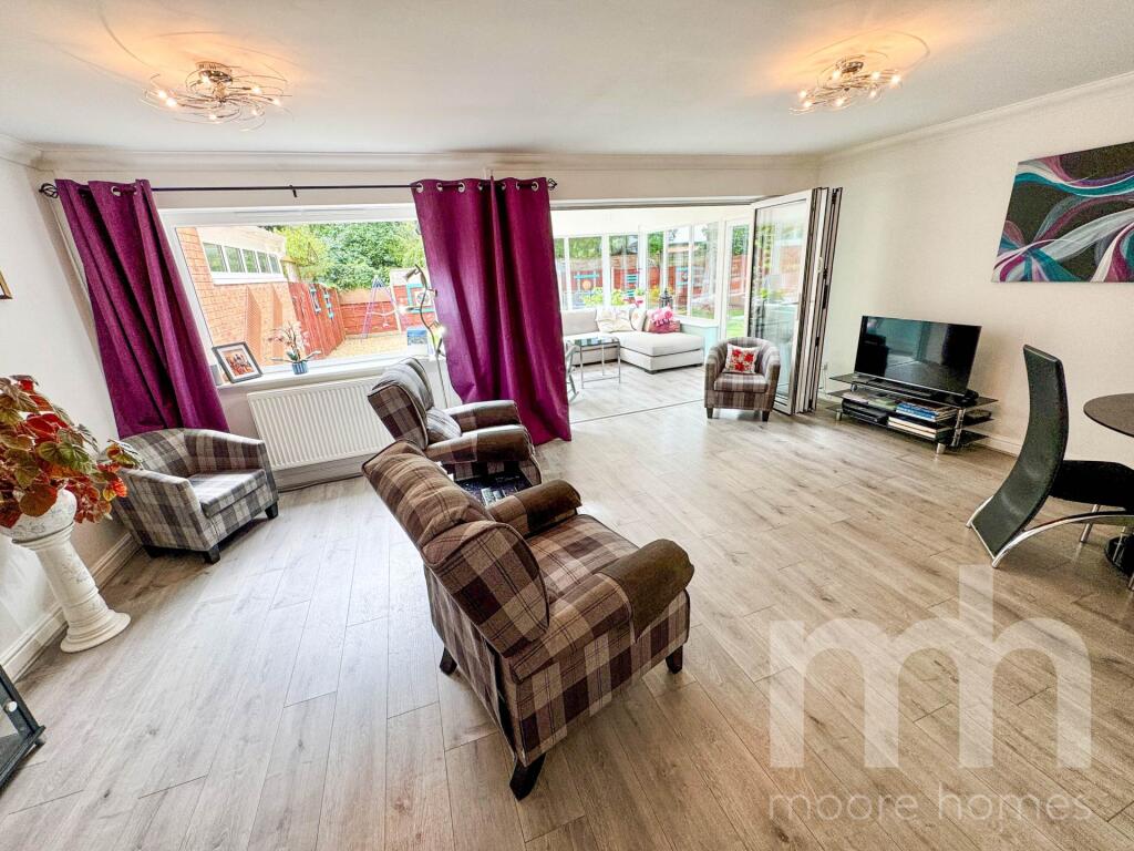 BEAUTIFULLY PRESENTED 4 BEDROOM, 2 BATH END SEMI DETACHED HOME - Tucked away small select development of 4 homes, end of CUL DE SAC position in POPULAR RESIDENTIAL LOCATION - LOVELY MODERN OPEN PLAN FEEL; LIVING ROOM/DINING ROOM open to stylish KITCHEN, CONSERVATORY, UTILITY/WC - GARDENS & GARAGE