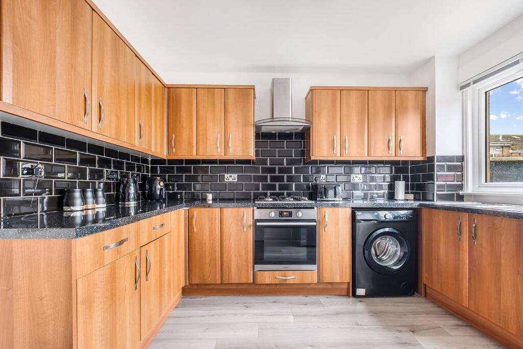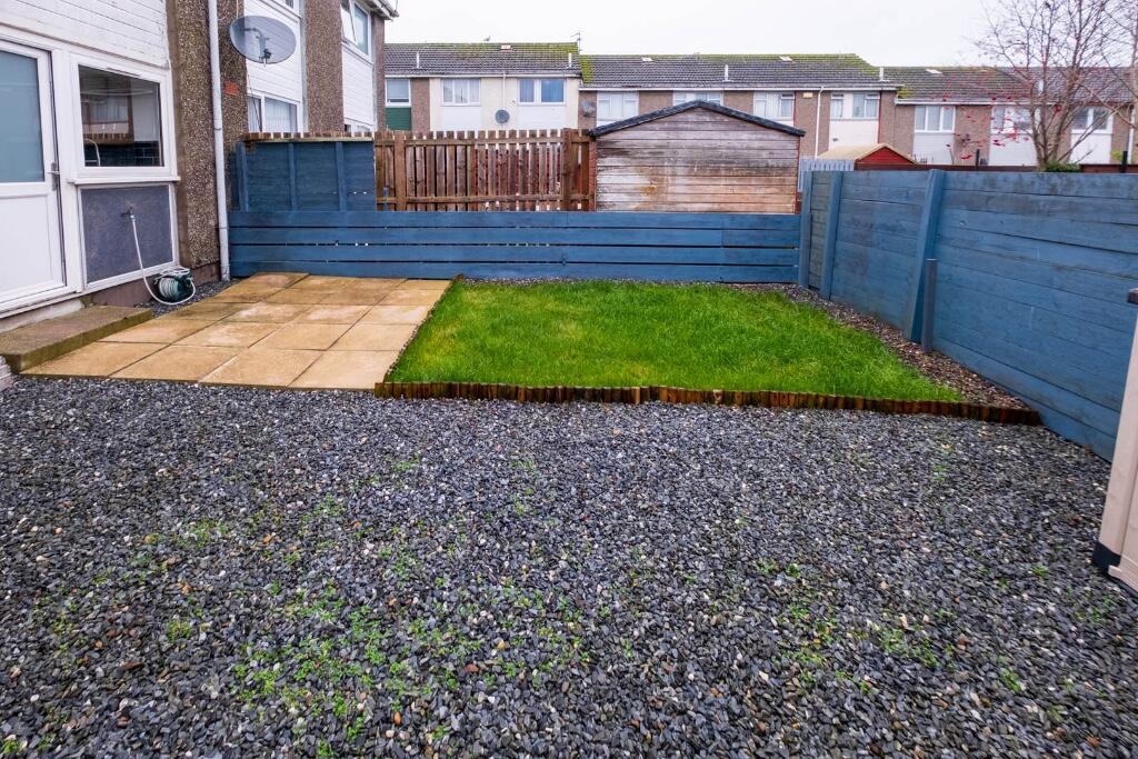 This is a three-bedroom terraced house located in the North East area of Dundee. The property features a modern kitchen and bathroom, suggesting recent updates. While the interior appears well-maintained, the exterior and garden could benefit from some improvements. The property is listed at £145,000, which is slightly below the average for the area. Transportation links are available with Dundee and Broughty Ferry train stations within a reasonable distance.