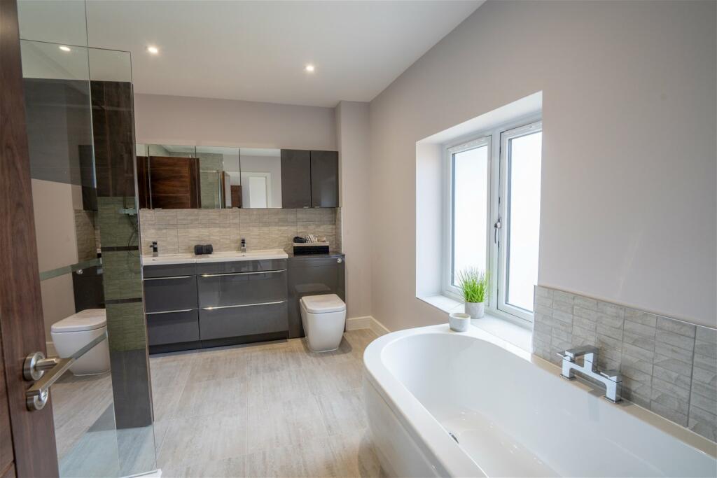This property is a new, five-bedroom, five-bathroom detached house located within the Hazelwood Development in Great Wyrley, Staffordshire. The development is situated in a semi-rural location, offering a balance between countryside living and accessibility to amenities. The home boasts a modern design, apparent from the images showing contemporary interiors, high-quality fixtures and fittings (kitchen, bathrooms), and potentially an ample amount of living space. The photos depict a spacious and well-lit layout, including a large kitchen/dining area, home office, multiple living areas, and several en-suite bathrooms. Although the exact plot size isn’t specified, the external images reveal a decent-sized garden and the overall development appears well-landscaped. Great Wyrley offers a selection of schools (with several rated ‘Good’), a train station, and local amenities, providing convenience for everyday needs. The price point is substantial, reflecting the property’s high-end finish and the current UK market conditions, though further comparative data is needed for a complete price assessment.