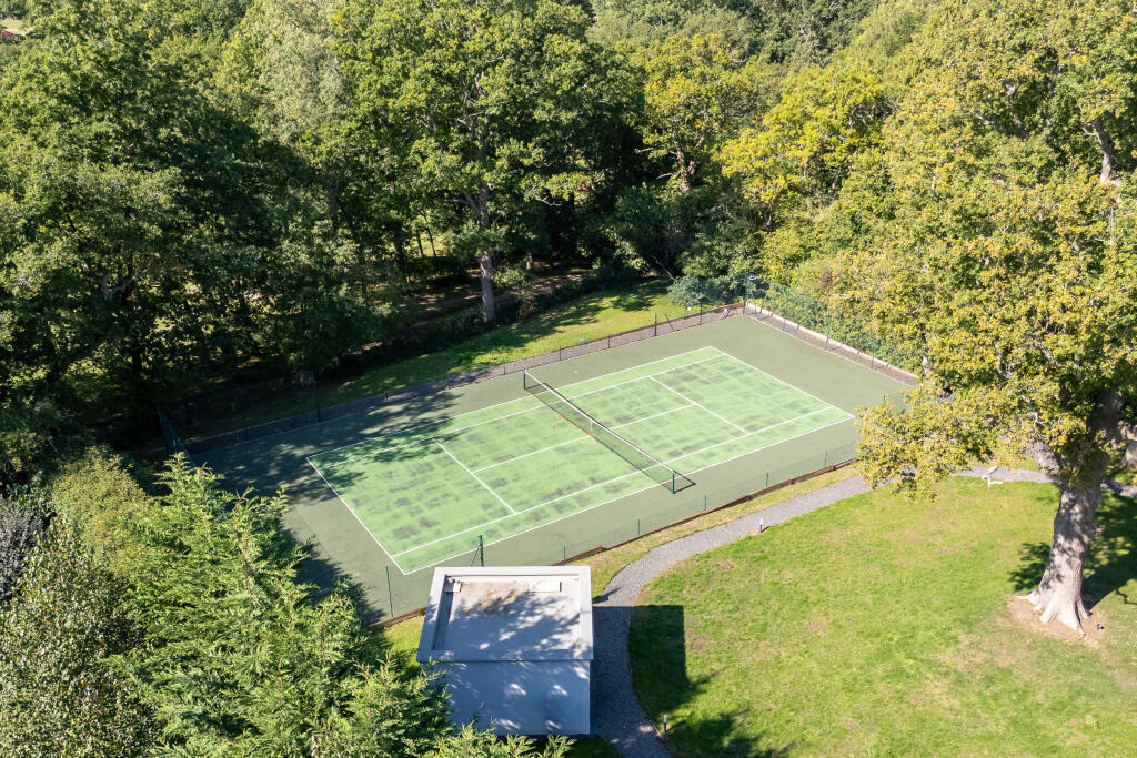 This is a substantial detached house located in Leatherhead, Surrey. The property boasts 6 bedrooms and 5 bathrooms, making it suitable for a large family. The house is in excellent condition, featuring modern interiors, a well-equipped gym, and a sauna. The property benefits from a large garden with a tennis court, offering ample outdoor space. While the price is significantly above the average for the area, the size, condition, and features of the property justify the premium. The location is desirable, with good access to transportation and schools.