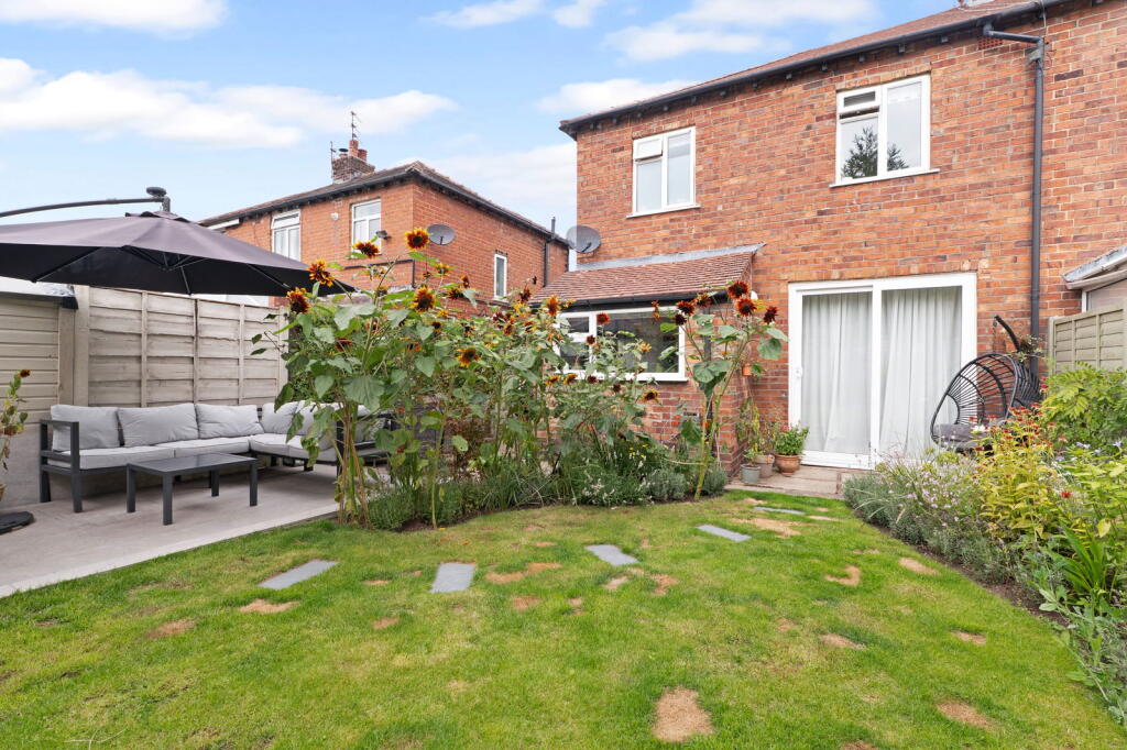 A semi-detached property on Bedford Road, Macclesfield. The property is in good condition with a modern kitchen and bathroom. It has a garden with both lawn and patio areas. The location is convenient, with Macclesfield train station and several schools nearby. The property is priced higher than average for the area.
