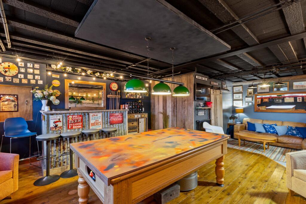 The house boasts a modern and well-maintained interior, as seen in the photos, offering a comfortable living space across three floors. Features like a well-equipped kitchen, multiple bathrooms, and potentially several reception rooms create a generous amount of living space. The inclusion of a dedicated games room, adds to the property’s appeal to families. The garden, although not fully quantified in terms of size, provides a significant outdoor area, ideal for children or relaxation.