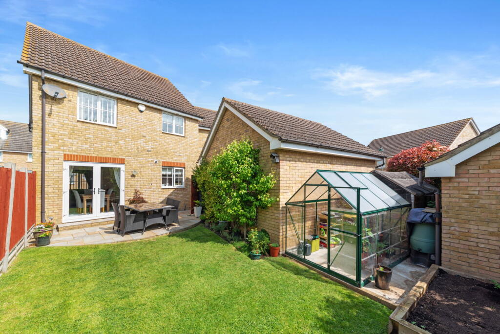 This property is a 4 bedroom, 3 bathroom link detached house located in Iwade, Kent. The property is well presented and benefits from a modern fitted kitchen and family bathroom. There is also a good size garden with a patio area and greenhouse. The location is convenient for local amenities and transport links. While the average price per sqft in the area is £451, this property is listed at a slightly lower price per sqft, making it potentially good value for money. However, it is important to note that the plot size is not specified. The property appears to be in excellent condition and well maintained.