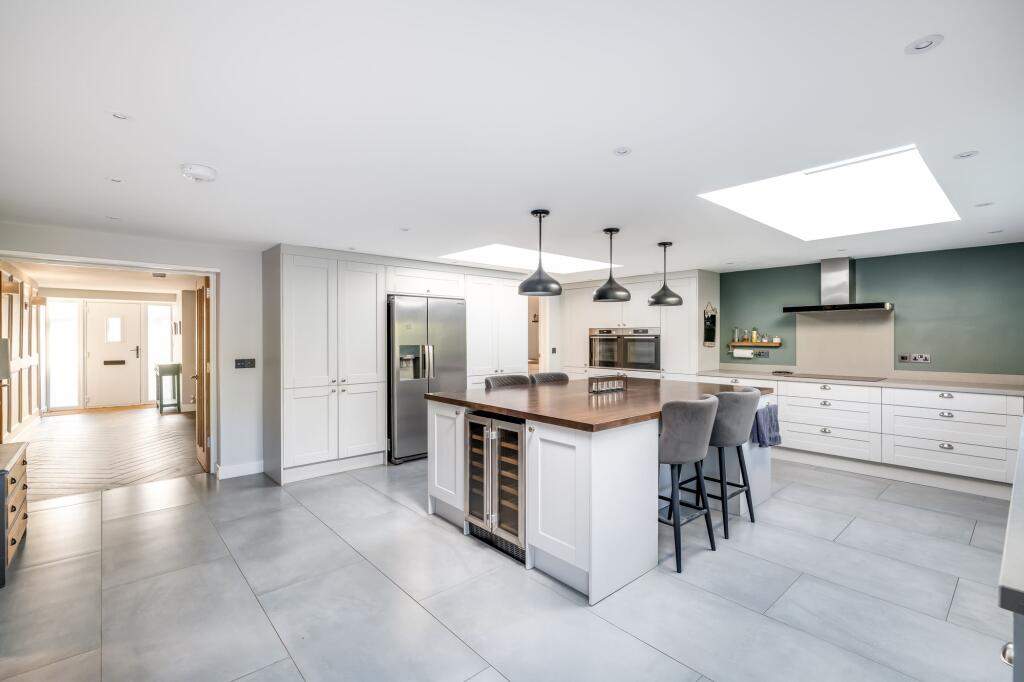 The property is located in Helmdon, a village near Silverstone in Northamptonshire. The proximity to Helmdon Primary School (0.44km) is a positive aspect for families. While other schools are further away, their “Good” Ofsted ratings suggest access to quality education options within a reasonable distance. The lack of information on nearby transportation links makes it difficult to fully assess the location’s convenience. Based on the provided images, the property appears to be in excellent condition. It is modern, well-maintained, and shows no signs of needing repair or renovation. The high-quality finishes and modern fixtures are clearly visible throughout the house. The property includes a substantial garden, as evidenced by aerial and ground-level photographs. The garden is well-maintained and offers a good amount of outdoor space. The list price of £925,000 is significantly higher than the average house price in the area (£505,305). However, without the property’s square footage, a precise price-per-square-foot comparison cannot be made. The lack of square footage data for both the subject property and comparable nearby properties makes a definitive price assessment challenging. Nearby listings show a range of prices, with some exceeding £900,000, suggesting that this price point might be achievable for a high-quality, modern property in this location, but further data is needed for a conclusive opinion.