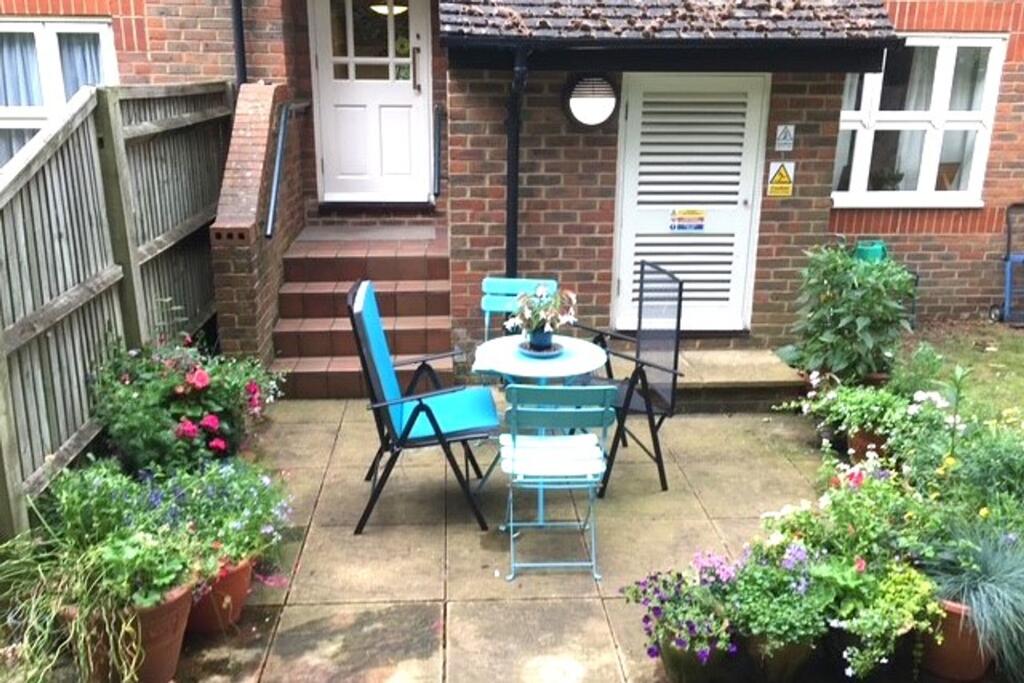 The property includes a private garden, offering outdoor space for relaxation and enjoyment. While the size is not explicitly stated, the images suggest a manageable and pleasant garden area.