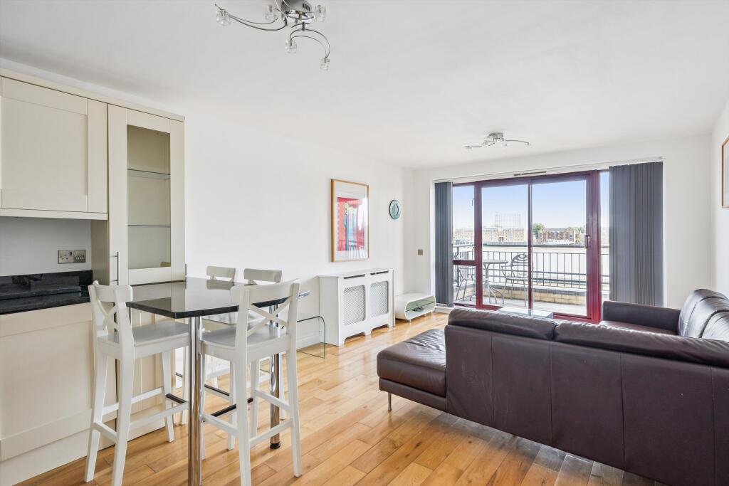 A bright two-bedroom apartment with good-sized balcony and wonderful views over the River Thames towards the Canary Wharf skyline. Set on the third floor, and offering the perfect vista over the River Thames from both the reception room and balcony, this bright apartment extends to approximately...