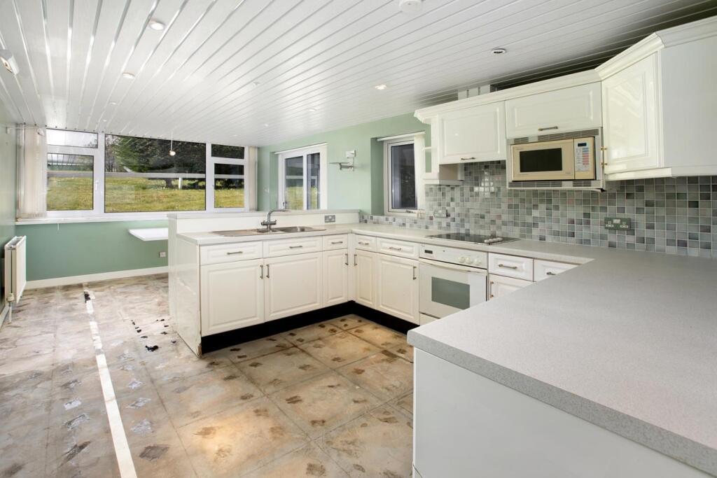 This detached property in Churston Ferrers, Brixham, Devon, offers 4 bedrooms and 2 bathrooms. While the location is desirable, with proximity to Churston Ferrers Grammar School Academy and scenic views, the property requires significant renovation. The interior shows dated bathrooms and kitchen, and a swimming pool/sauna area in need of refurbishment. The property benefits from a large garden and adjacency to a golf course. The asking price of £850,000 appears high considering the condition, especially when compared to the average area price of £419,056. A potential buyer should factor in substantial renovation costs.