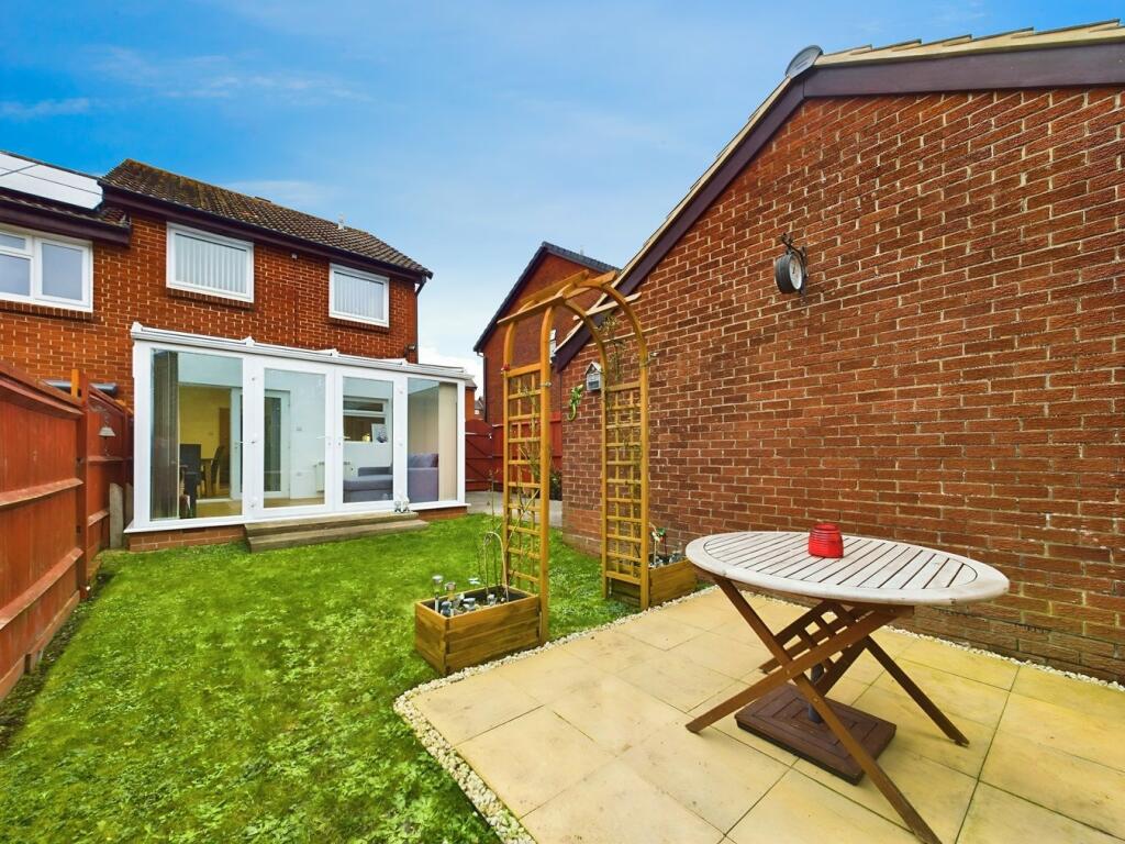 This three-bedroom semi-detached property in Bursledon, Southampton, presents itself as a well-maintained family home. The images showcase a modern, updated interior with a recently fitted kitchen and bathroom. The open-plan living space is airy and bright, flowing seamlessly into a conservatory that opens onto a manageable rear garden, a small patio, and a garage.