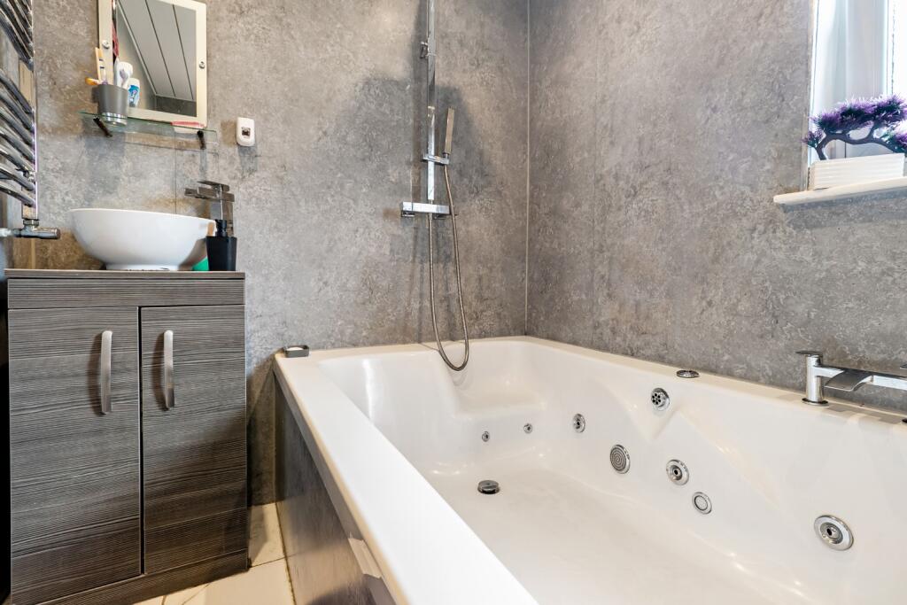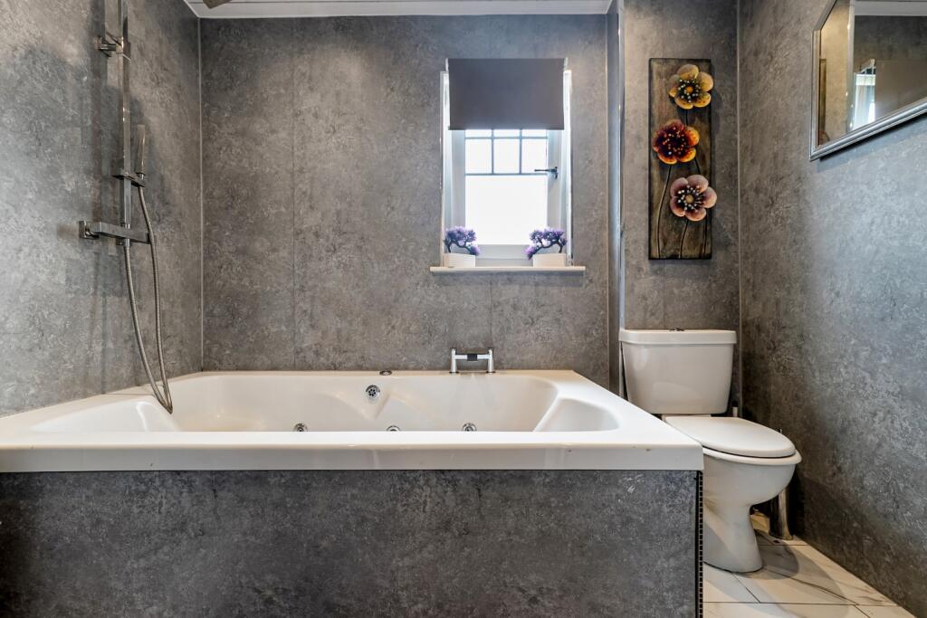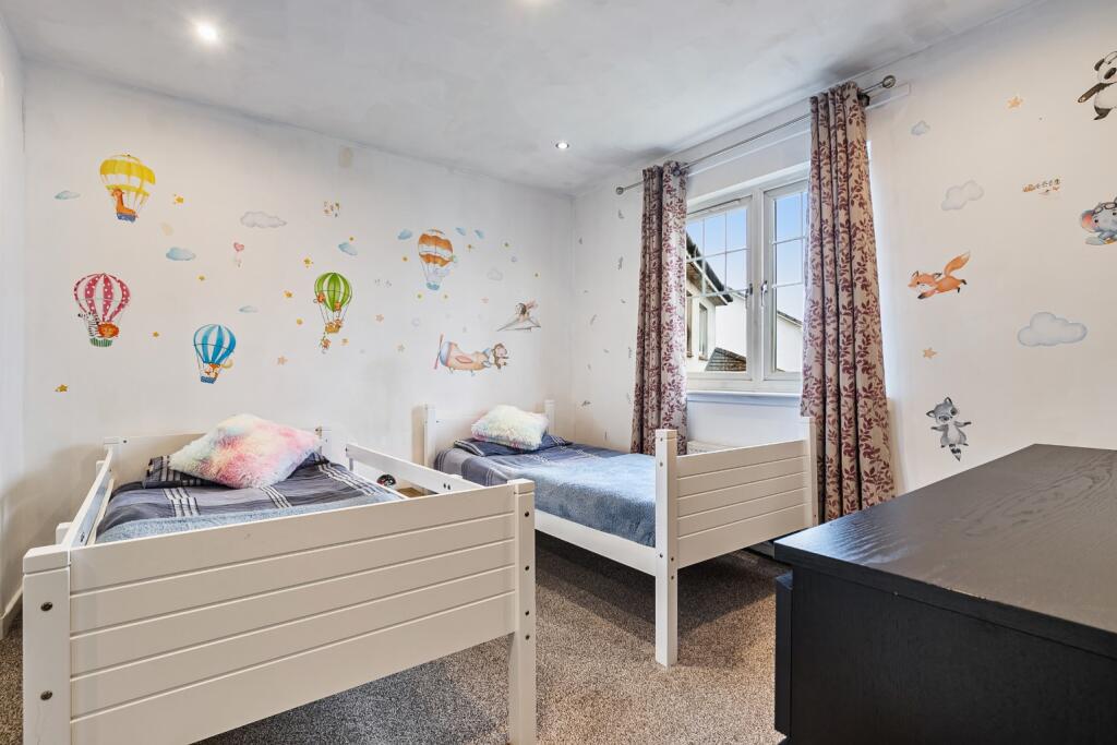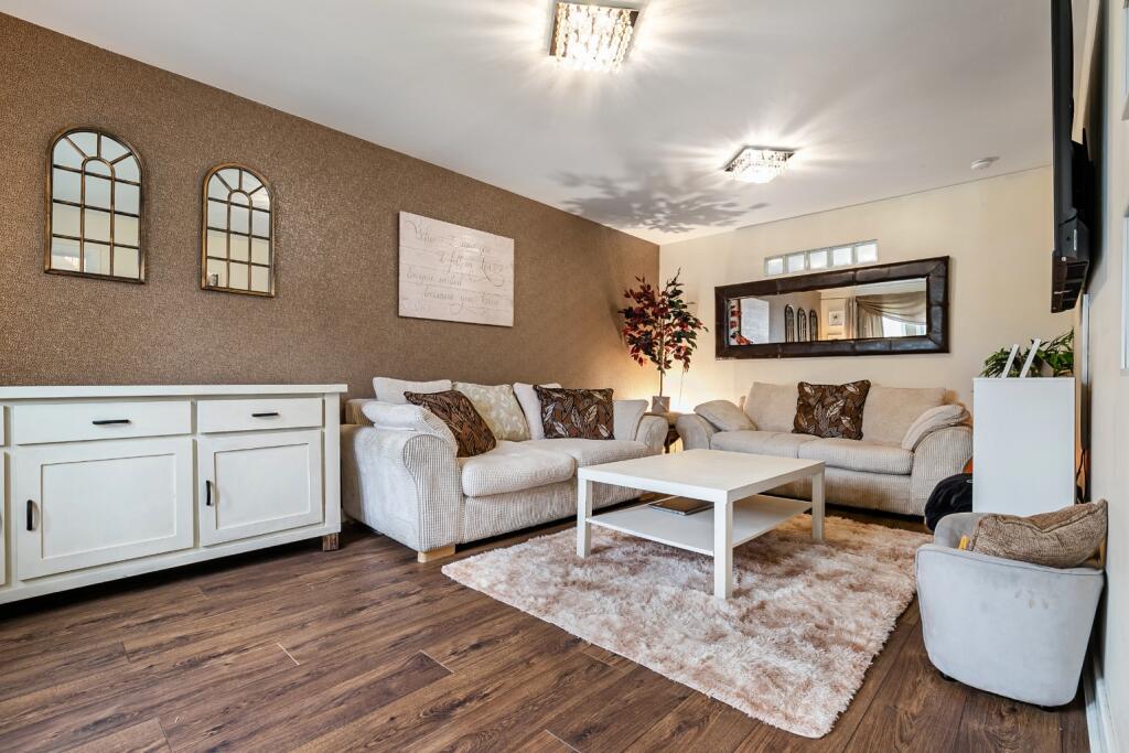 This five-bedroom detached villa in Gartcosh, Glasgow, is presented in excellent condition. The property benefits from a contemporary interior, evidenced by modern fitted kitchen and bathrooms, upgraded fixtures and fittings, and a fresh, stylish décor. The spacious floor plan, encompassing five bedrooms and three bathrooms, caters to a large family or those requiring ample living space. A notable feature is the inclusion of a double garage, providing convenient parking and storage. The inclusion of a rear garden, which includes a decked patio area and a well-maintained lawn adds considerable value. The property’s location offers a compelling mix of peacefulness in a semi-rural location with the convenience of nearby rail transport links to Glasgow and surrounding areas. The absence of nearby school data listed in the information given prevents a conclusive statement on the proximity to local schools, a potentially important consideration for families. The competitive list price positions this home well within the current market conditions and requires more detailed comparison analysis using average property prices per sq ft to provide a definitive statement. Overall, this property presents a strong case for a buyer seeking a blend of modern living, family space, and convenient access to nearby amenities and the city of Glasgow.