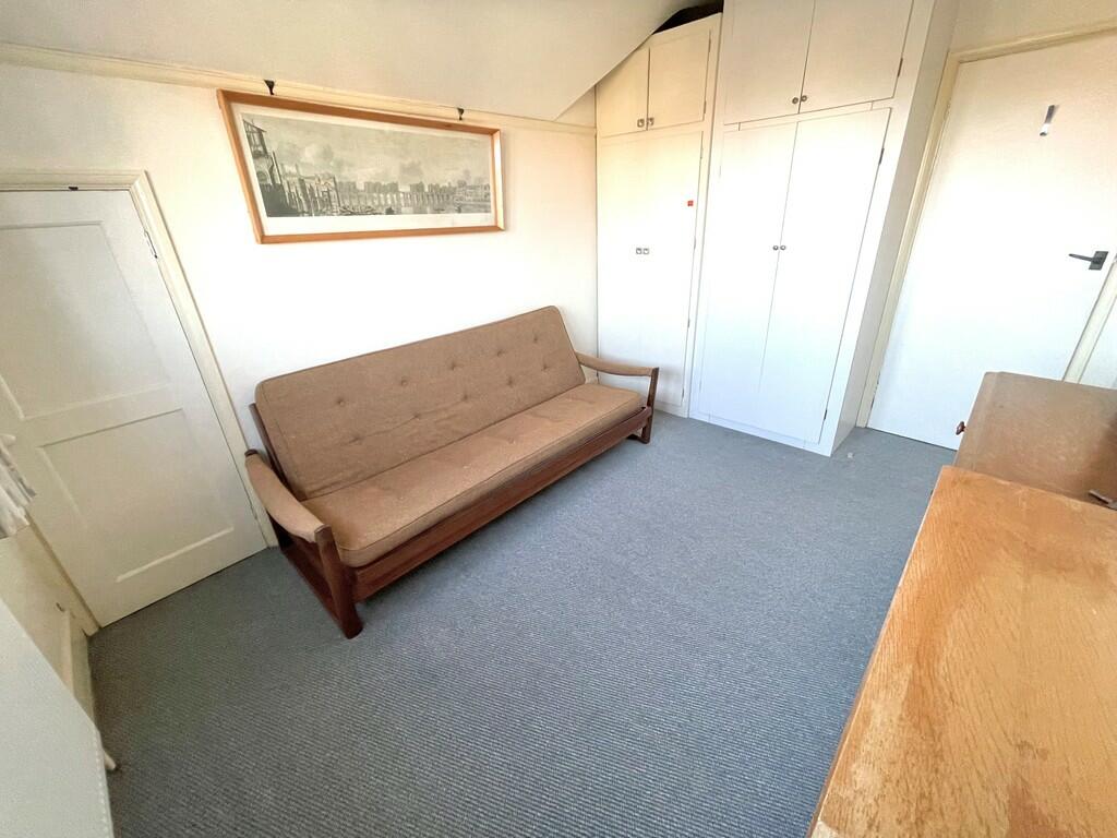 Detached chalet style property in a private road in south Rustington. Entrance hall, inner hall, bay fronted lounge and dining room, G/F fourth bed/study, bathroom/WC, additional separate shower/utility room and three first floor bedrooms. Private drive to garage and 75' x 50' south rear garden.