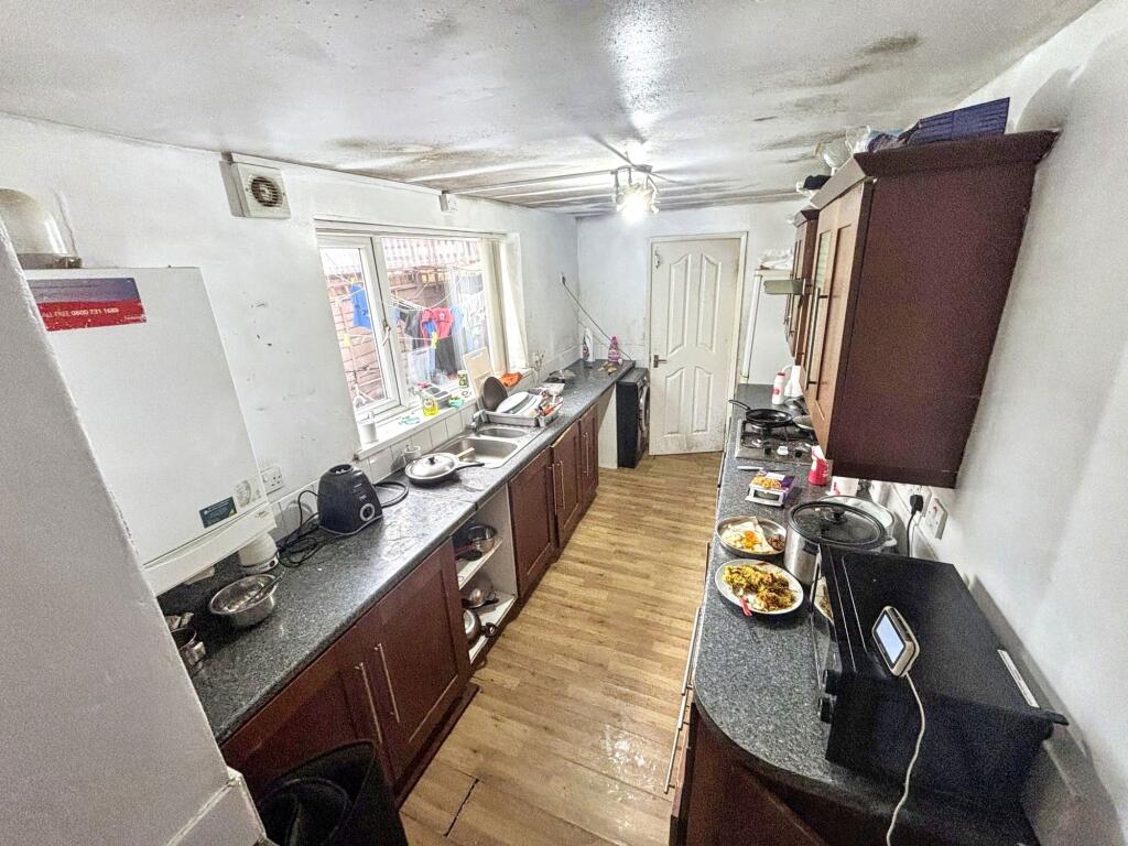 This is a terraced property located in Pallion, Sunderland. The property requires significant renovation, as evidenced by the visible damp and outdated fixtures. It features two bedrooms and one bathroom. The property includes a small garden. The location offers proximity to local schools and transportation links. Considering its condition, the asking price of £65,000 presents an opportunity for buyers willing to invest in refurbishment.