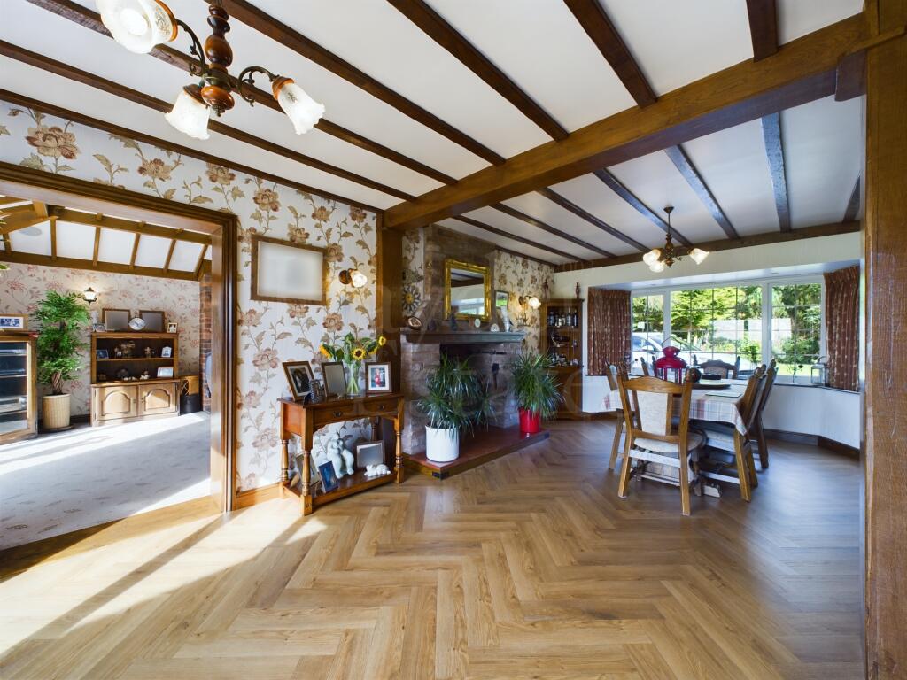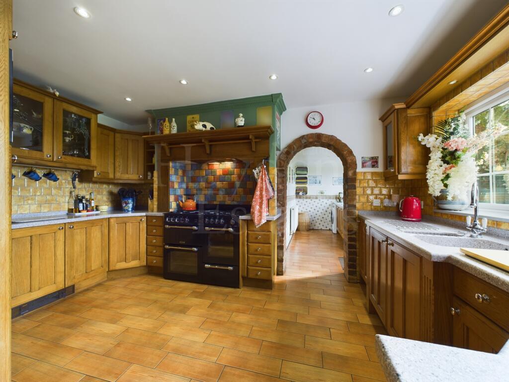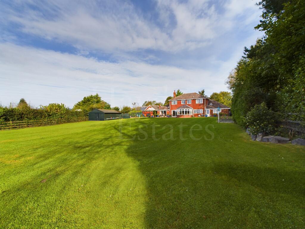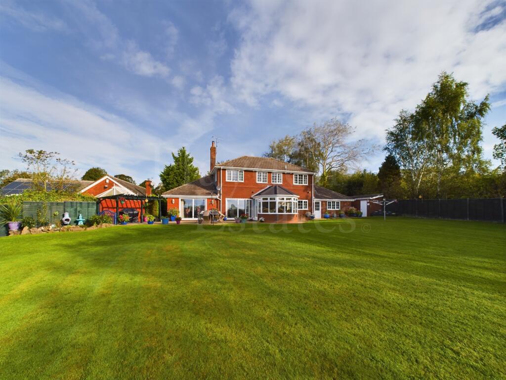 An impressive much improved four bedroom detached property occupying a spacious plot with rear views. Three reception rooms, quality kitchen, utility en suite bathroom and gardeners toilet. Double garaging, workshop, storage, boiler house, further storage, gardens and parking. Viewings essential ...