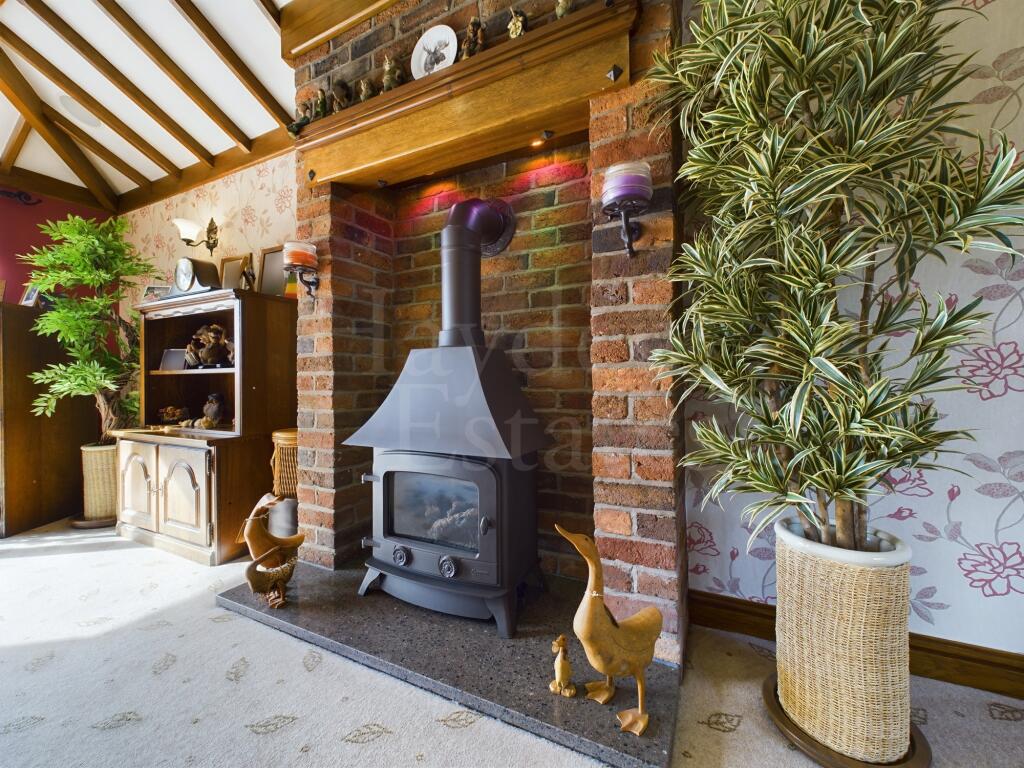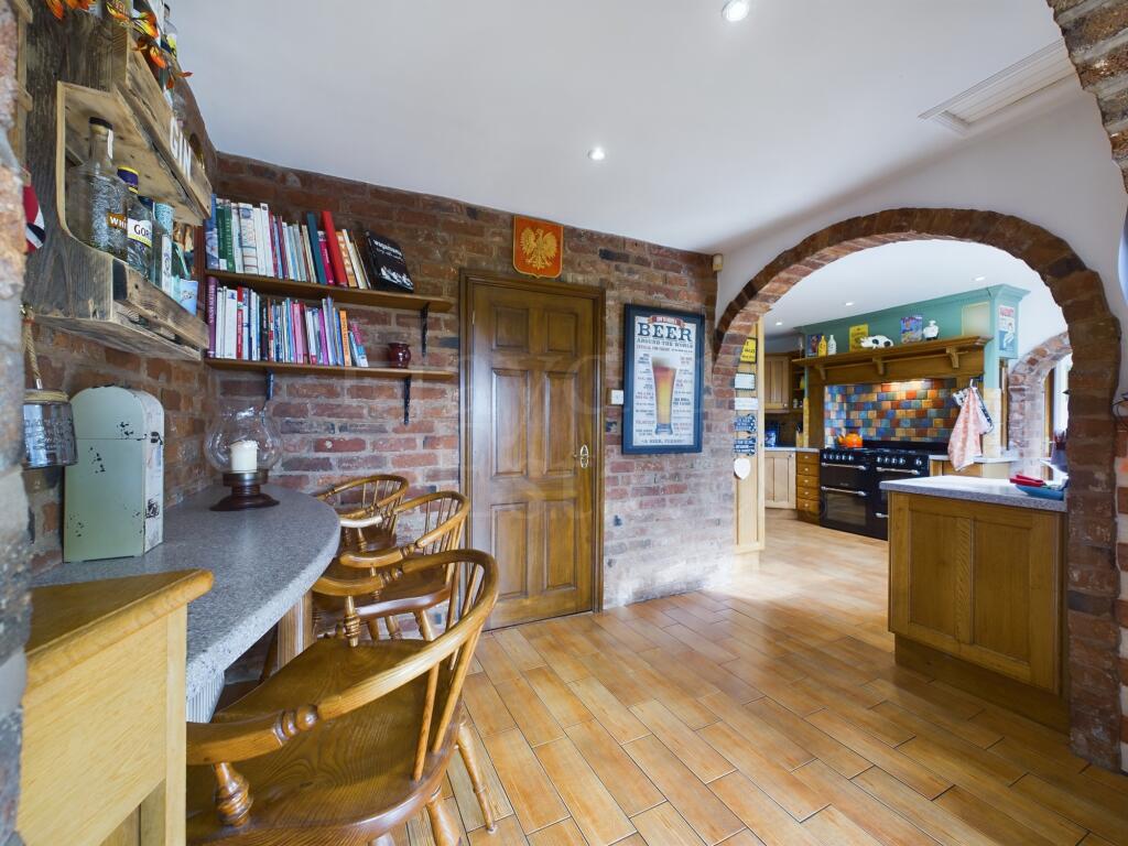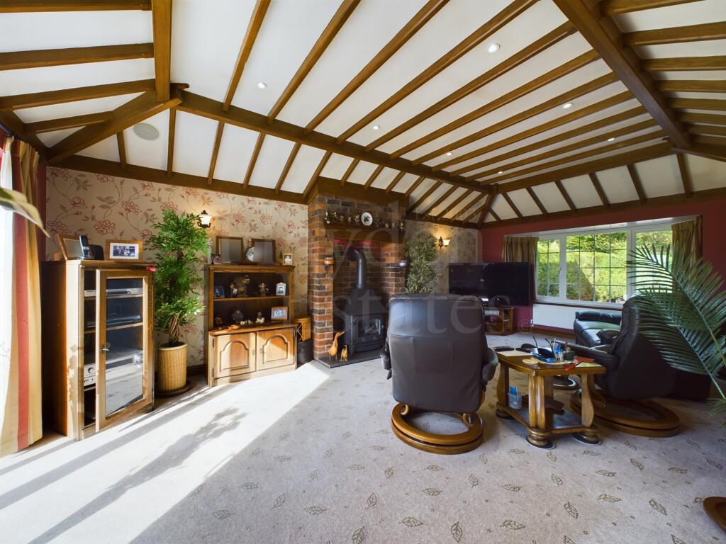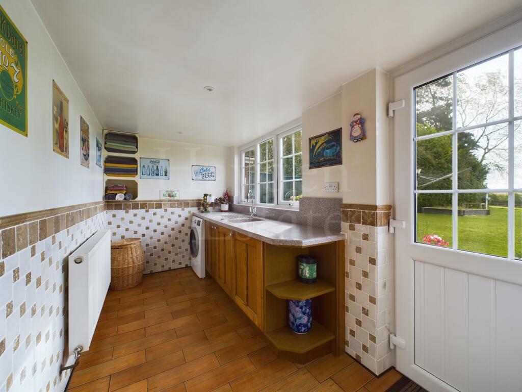 An impressive much improved four bedroom detached property occupying a spacious plot with rear views. Three reception rooms, quality kitchen, utility en suite bathroom and gardeners toilet. Double garaging, workshop, storage, boiler house, further storage, gardens and parking. Viewings essential ...