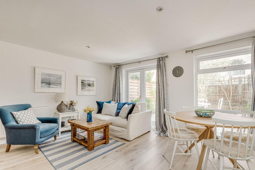 Based on the provided images, the property appears to be in excellent condition. The interior is modern, well-maintained, and tastefully decorated. There is no visible evidence of wear and tear or the need for repairs or renovations. The kitchen and bathroom appear recently updated. The garden is a well-maintained patio area. This suggests a high condition score.