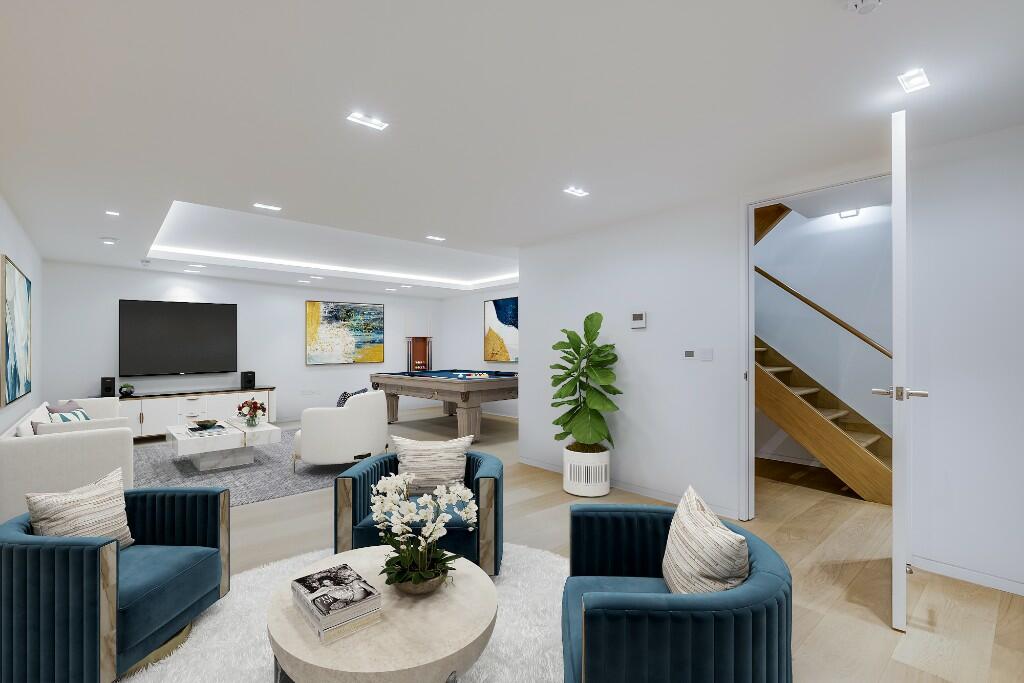 This property in Victoria Mews, London, W11, presents as a contemporary three-bedroom home. The images showcase a modern, well-designed interior with high-quality finishes. The kitchen is spacious and open-plan, flowing seamlessly into a dining area. Multiple living spaces are visible, and the property features a basement area that appears to incorporate leisure facilities. The bedrooms, shown in the provided images, exhibit an upmarket aesthetic. The images do not give a full picture of the plot size, but seem to indicate a relatively compact garden or patio area. The property’s location in Victoria Mews, a desirable part of Notting Hill, is a strong selling point, close to excellent schools and various transportation options. The lack of details on comparable property sizes makes a definitive evaluation of the value difficult. However, the asking price appears to align with the general pricing in the area, and therefore this house represents a good example of a high-end property that has been well-presented. A comprehensive survey and review of property records would be necessary to provide a conclusive valuation.