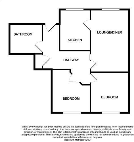2 bedroom first floor apartment. Accommodation comprises hall entrance, lounge/diner, fitted kitchen with electric oven, family bathroom with shower over bath, one double and one single bedroom. UPVC double glazing. Electric heating. Off road parking. EPC Rating C. Council Tax Band B.