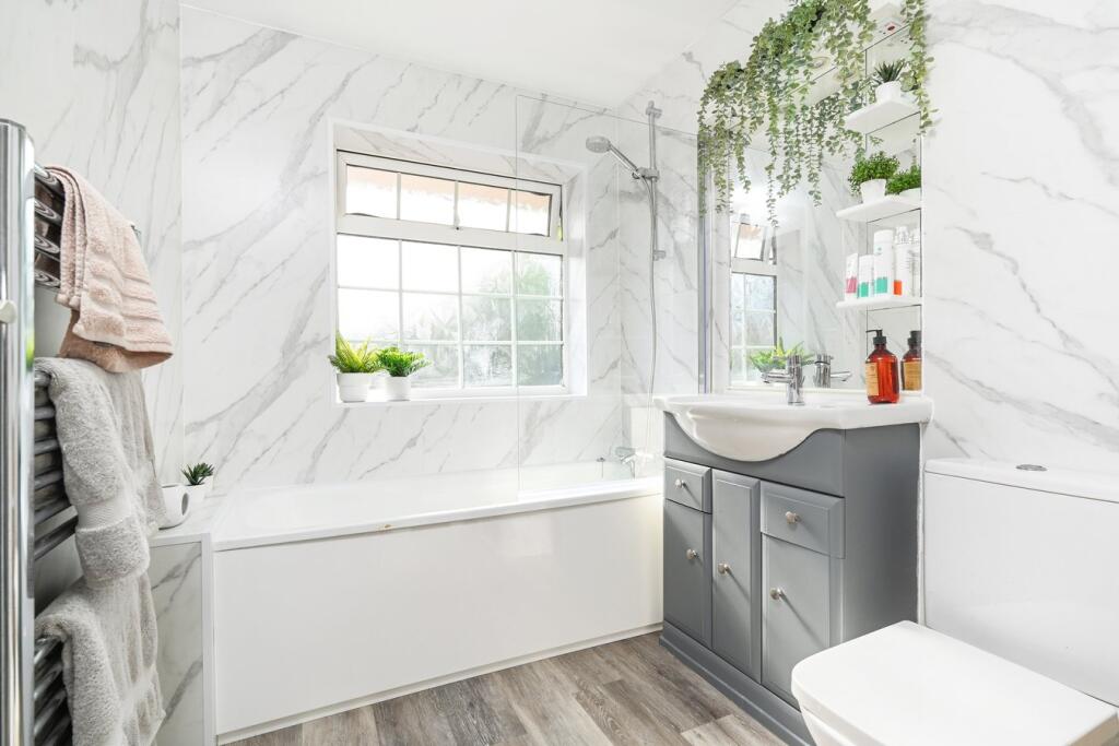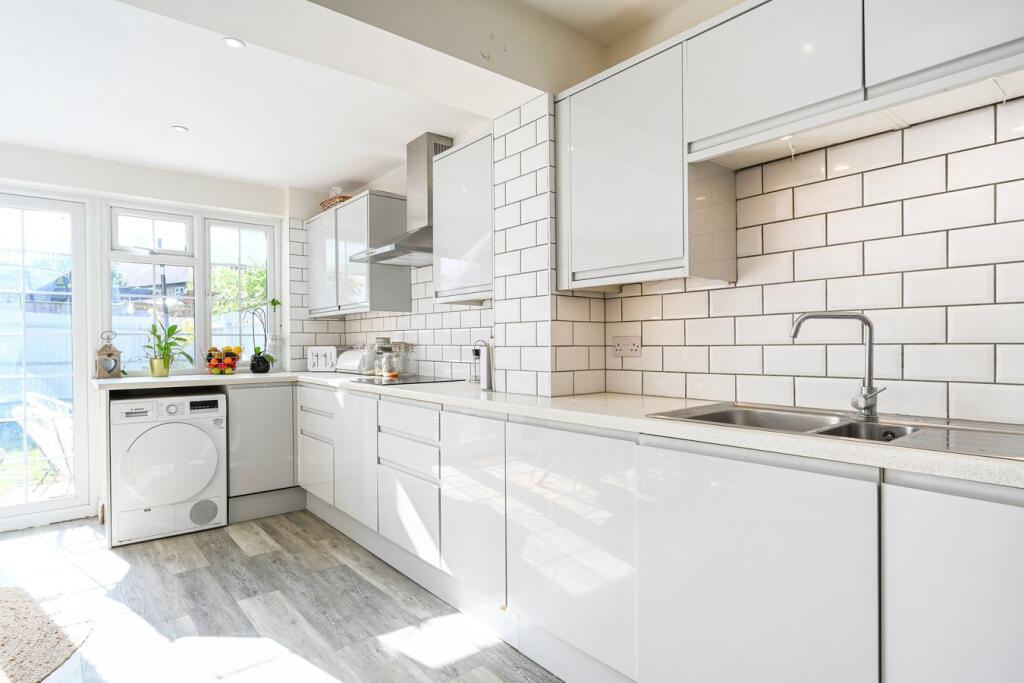 This three-bedroom, one-bathroom property is located in Hersham Village, Surrey, and is listed at £549,950. The property has a size of 979.52 sqft and benefits from a garden. The average price for properties in the area is £776,758, with an average price per sqft of £609. This suggests that the list price may be slightly below average for the area, considering the average property is larger at 1,274 sqft. Nearby properties on Trenchard Close have sold for prices ranging from £245,000 to £700,000, indicating some price variation on the street. The property appears to be well-maintained and recently renovated based on the provided images, showing a modern kitchen and bathroom. The location is convenient, with nearby access to Walton-on-Thames and Hersham train stations, and several well-regarded schools within a reasonable distance. The presence of a garden is a positive feature. Overall, considering the condition, location, and size, the property seems reasonably priced for the area, though slightly below the average.
