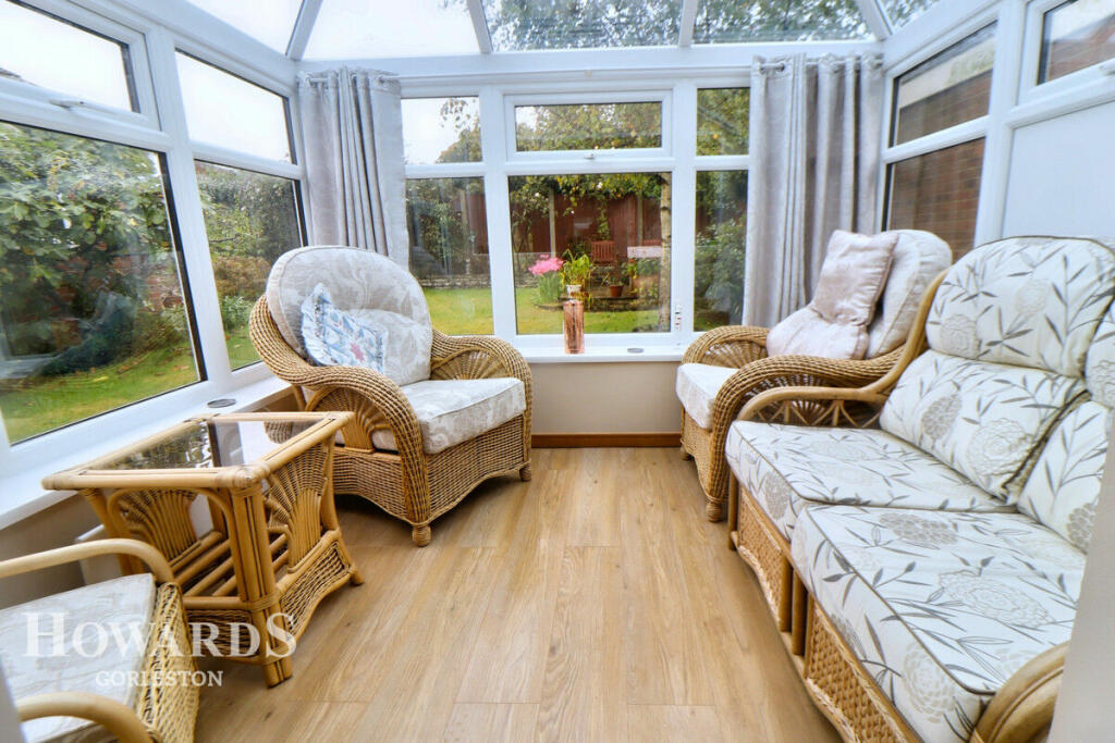 The bungalow itself appears to be in good, habitable condition, though the decor suggests it could benefit from some modernisation to enhance its contemporary appeal. The interior photos reveal a spacious open-plan kitchen/diner, which is a desirable feature, along with a conservatory and a garden that provides additional living space. The presence of a garage is also a valuable addition.