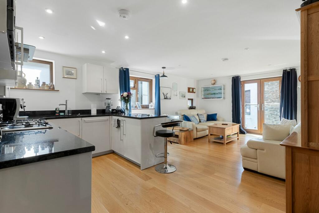This two-bedroom, two-bathroom apartment is situated in a desirable location in Brixham, Devon. The property boasts a modern interior with a recently updated kitchen and bathrooms and hardwood flooring throughout. The open-plan living area benefits from plenty of natural light and leads out to a shared courtyard. While the property offers a central location in Brixham with easy access to amenities and transportation links, its lack of a private garden and the absence of square footage information in the listing may impact its overall appeal to buyers. The listing price falls within the range of comparable properties in the area, indicating a competitive offer, although additional information is needed for a full comparative market analysis.