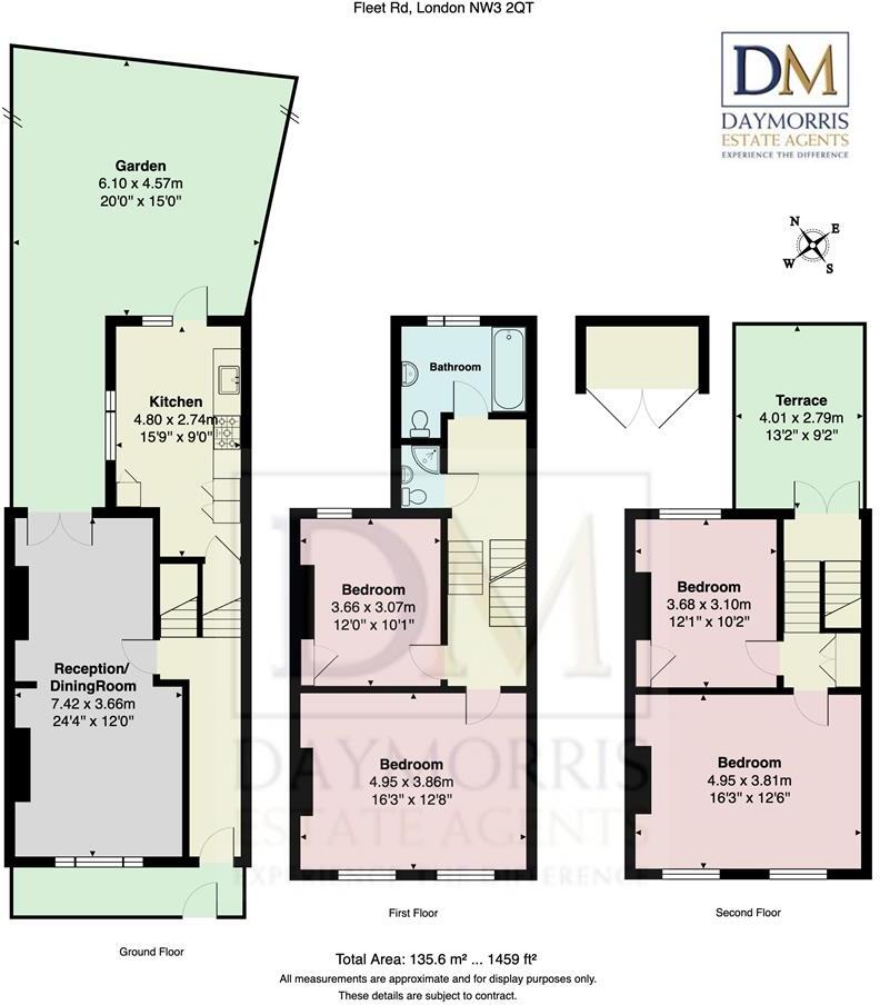 This property is a 4-bedroom, 2-bathroom house located on Fleet Road in Hampstead, within the London Borough of Camden. The area is known for its proximity to Hampstead Heath, excellent schools, and good transport links. The property itself appears well-maintained and modernised, with a contemporary kitchen and stylish bathrooms. The inclusion of a private garden adds to its appeal. The list price of £1,799,950 is higher than the average price for the area (£1,123,997), but considering the property’s size (1459.59 sqft), condition, and desirable location, it may represent reasonable value for money, although a detailed comparison with similar properties in the immediate vicinity would be beneficial to confirm this. More information on the plot size would also be helpful in determining the overall value.