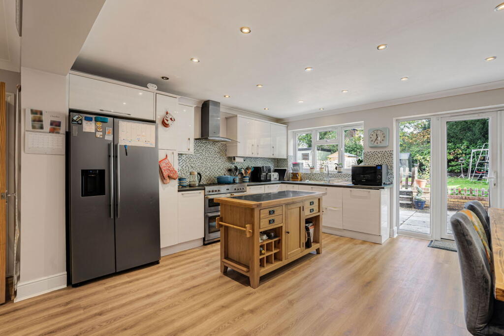 This is a 4-bedroom semi-detached property in Bookham, Surrey, presented by Henshaws Estate Agents. The house offers 3 bathrooms and a generous 1,360 sqft of living space. The property benefits from a modern kitchen, well-maintained bathrooms, and a good-sized garden. While generally in good condition, some rooms could benefit from redecoration to fully modernise the interior. Located in a family-friendly area with good transport links and nearby schools, the property is well-positioned. The asking price of £699,950 appears reasonable considering the size, location, and features, although it may be slightly higher compared to recent sales of similar properties in the immediate vicinity. The property also benefits from off street parking and a garage.