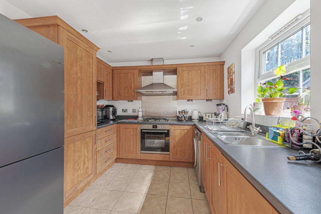 This is a four-bedroom terraced house in Greenhithe. The property benefits from a garden and is located within a reasonable distance of local amenities, schools, and transportation links. The interior appears to be well-maintained, although some aspects could benefit from modernization. The asking price seems appropriate for the area and the property type. The property is listed with James Gorey Estate Agents.