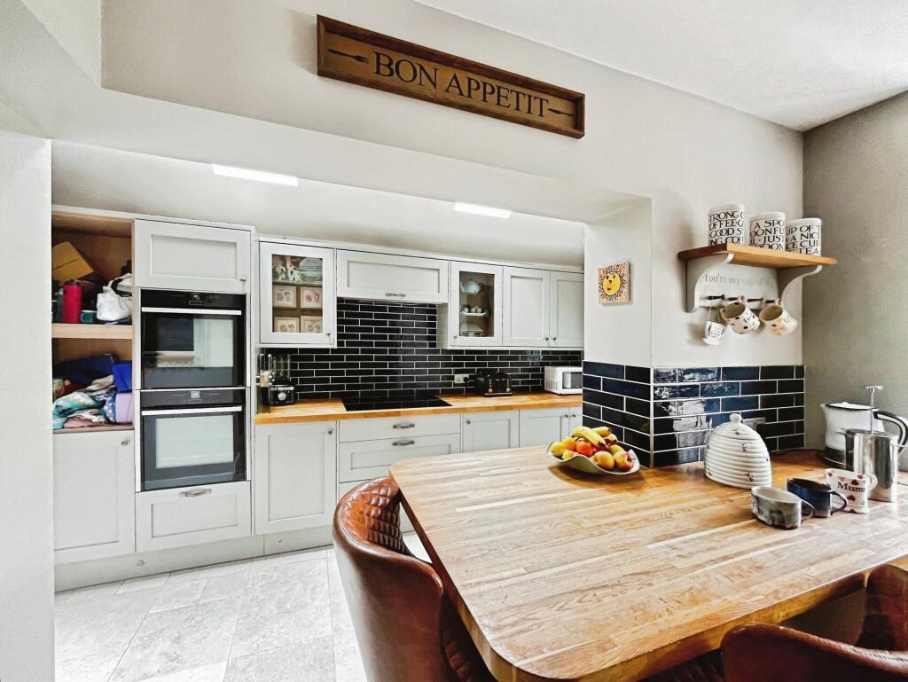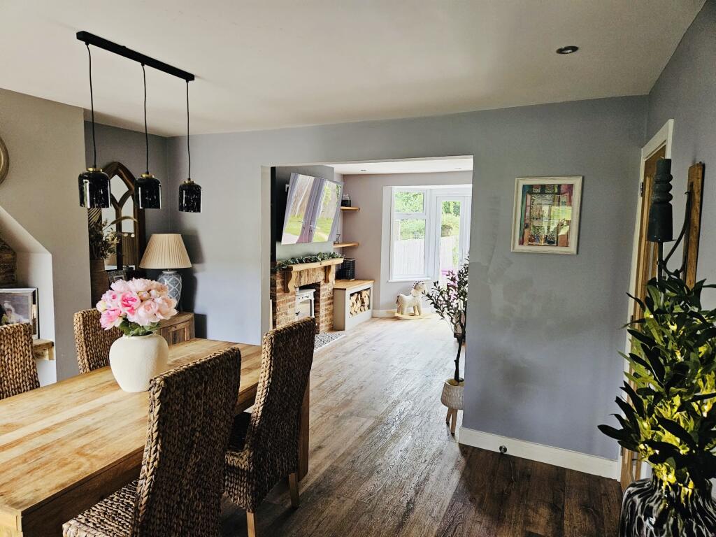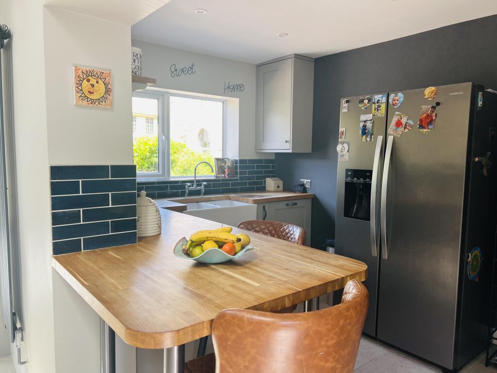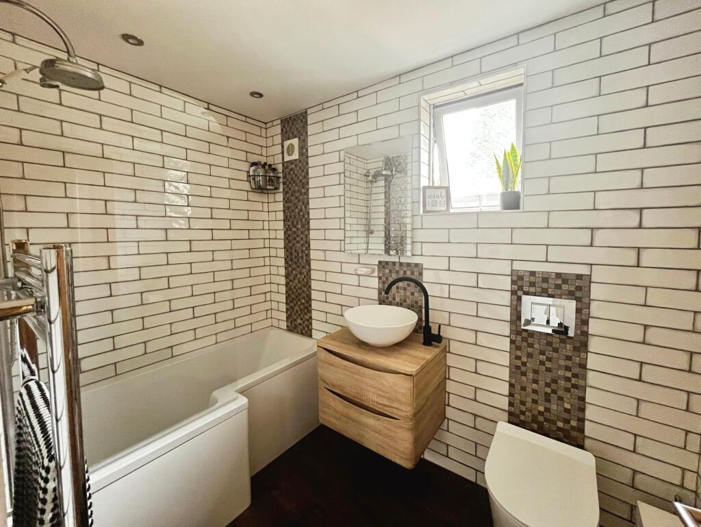Based on the provided images, the property appears to be in excellent condition. It has undergone recent renovations or modernisation, evident in the updated kitchen, bathroom, and flooring. The interior is well-maintained and presented to a high standard. The exterior also looks well-maintained with a paved driveway and a landscaped garden. There is no visible evidence of significant repair needs.